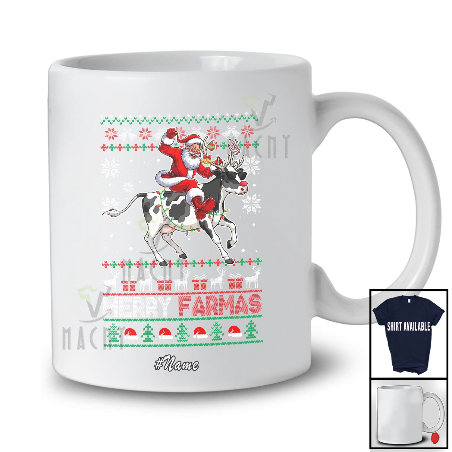 • Personalized Custom Name Merry Farmas; Joyful Christmas Sweater Santa Farmer Riding Cow Reindeer T-Shirt. This cotton t-shirt is a durable staple product with a classic fit. One of the most popular items, it has a relaxed style made for everyday and casual wear.