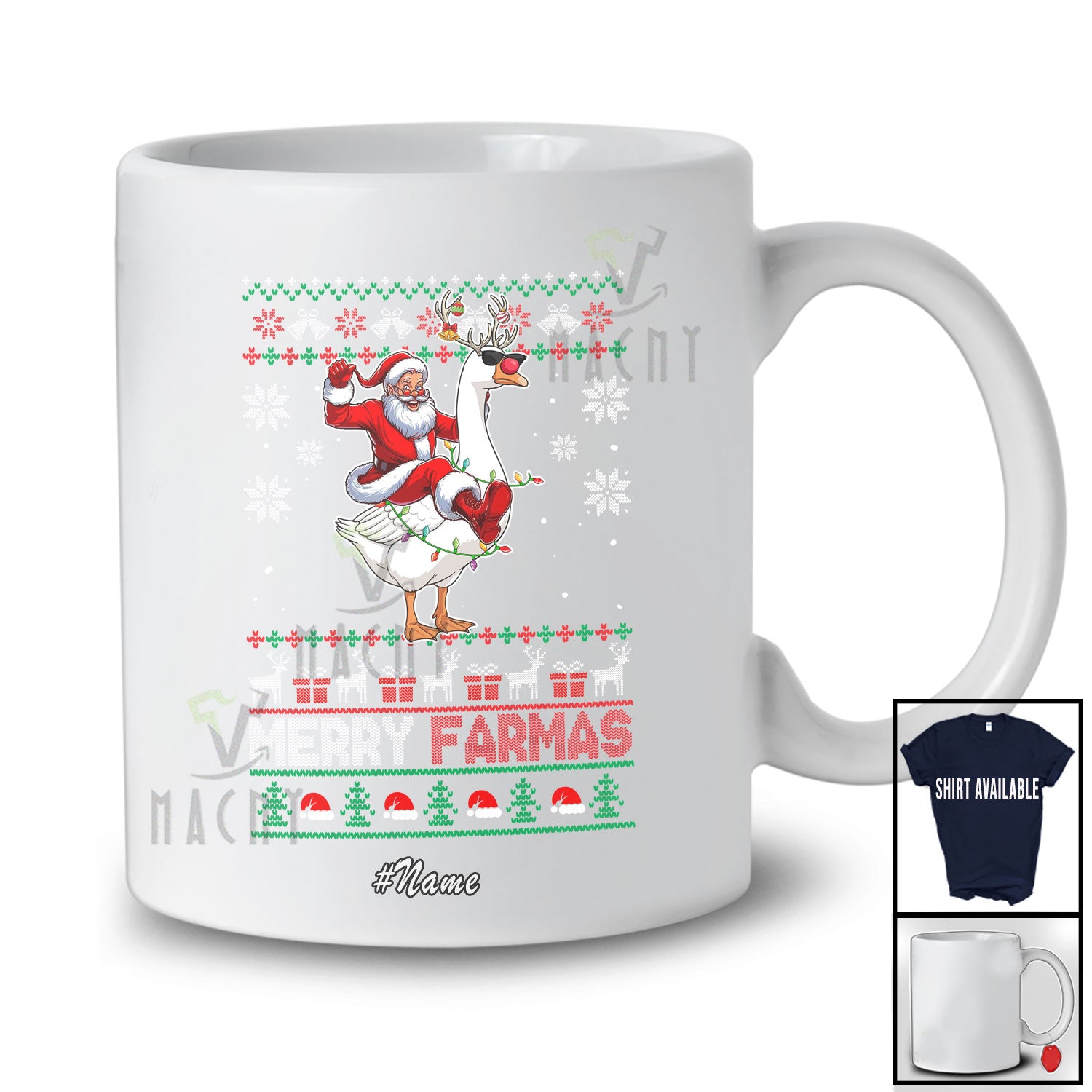 Personalized Custom Name Merry Farmas; Joyful Christmas Sweater Santa Farmer Riding Goose T-Shirt