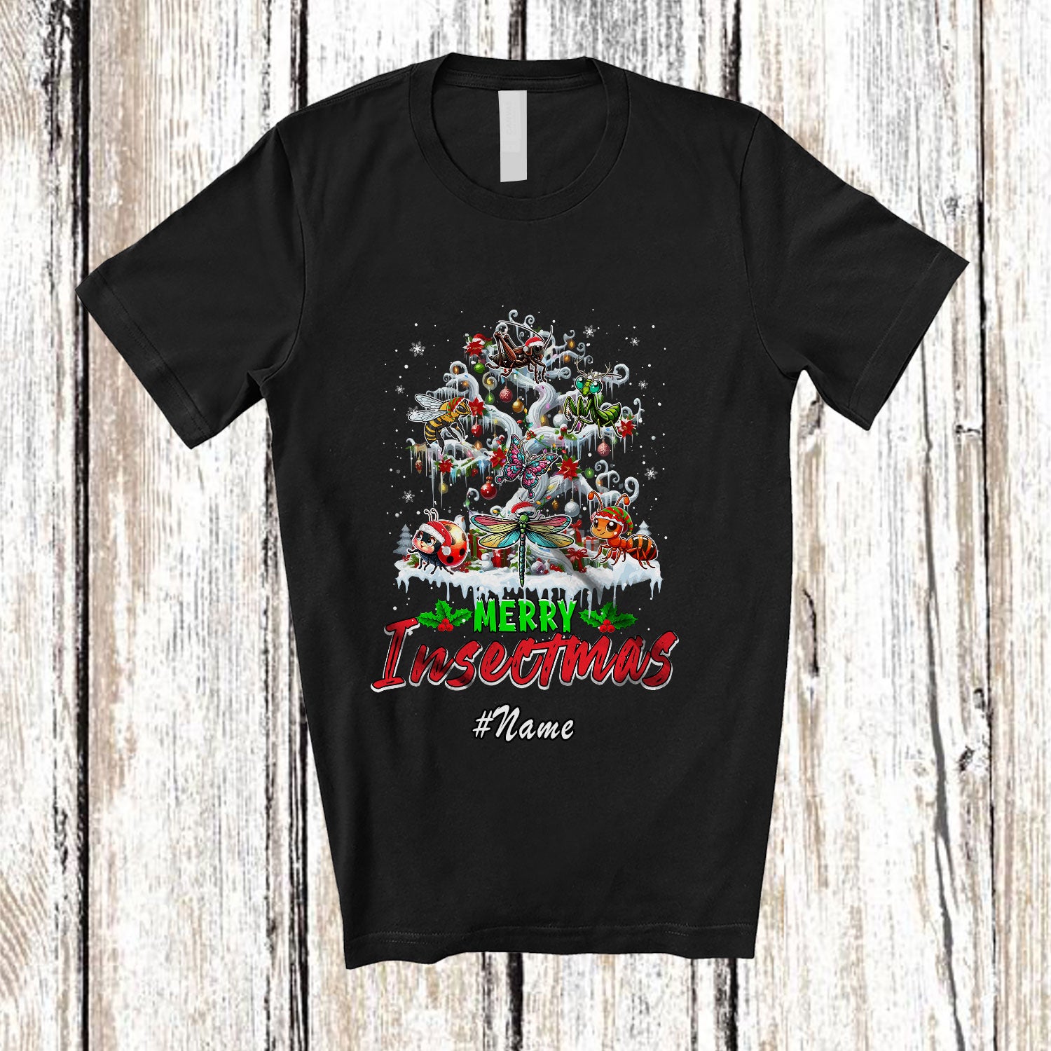 Personalized Custom Name Merry Insectmas; Lovely Christmas Butterfly Bee Insect On X-mas Tree T-Shirt