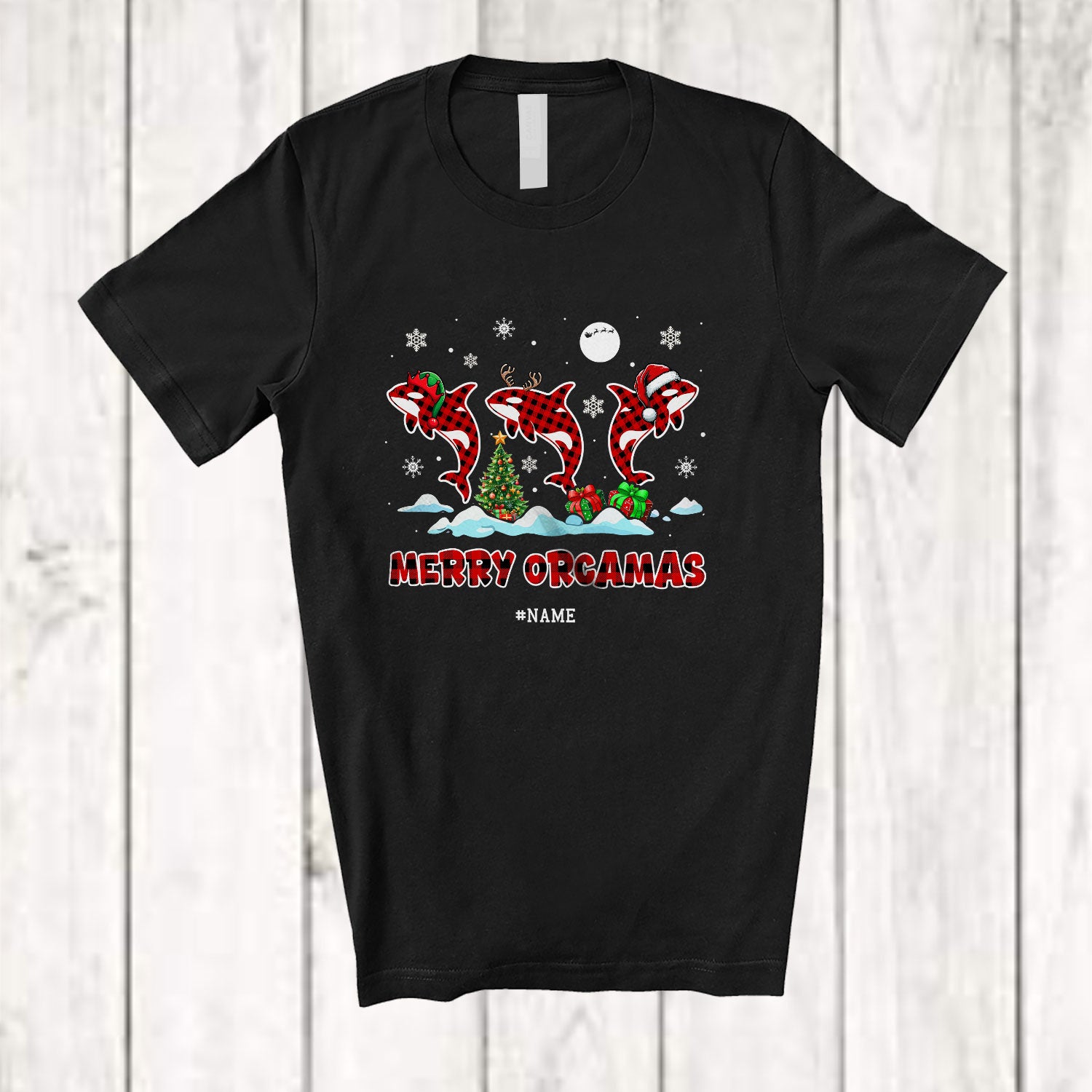 Personalized Custom Name Merry Orcamas; Amazing Christmas Three Plaid Orca Killer Whale T-Shirt