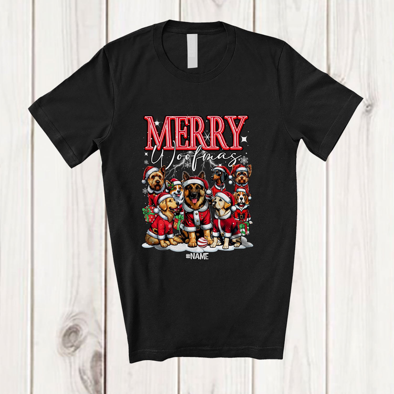 Personalized Custom Name Merry Woofmas; Joyful Christmas Santa Dog Collection Lover; Pajamas Family T-Shirt