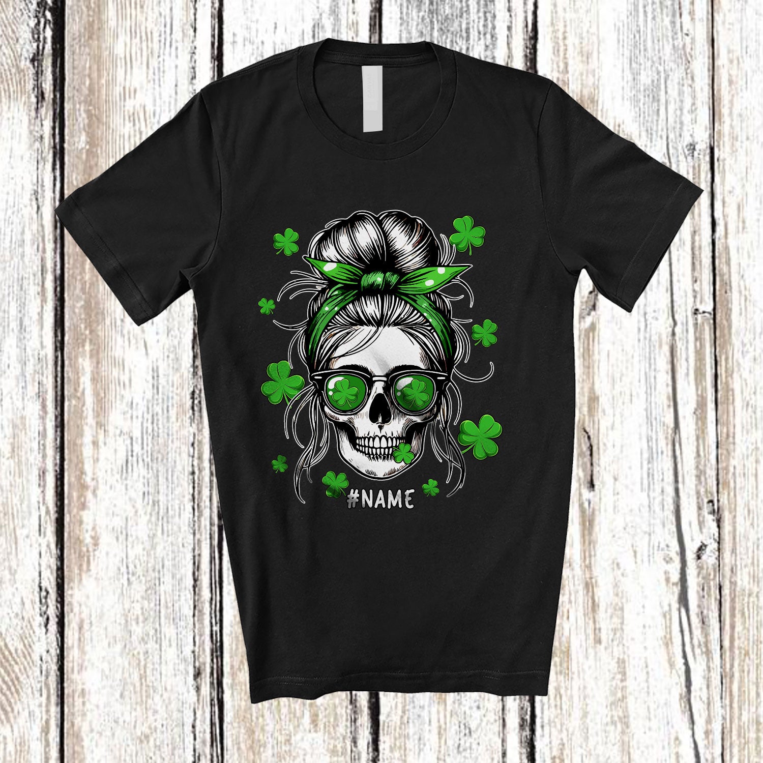 Personalized Custom Name Messy Bun Hair Woman; Humorous St. Patrick's Day Shamrocks T-Shirt