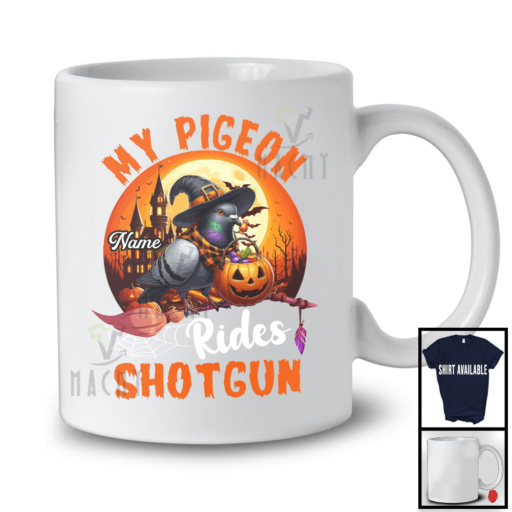 This Personalized Custom Name My Pigeon Rides Shotgun, Humorous Halloween Witch Bird Lover T-Shirt is great idea gift for your family, friends in this birthday, christmas, mother's day, father's day, patrick's day or any holiday.