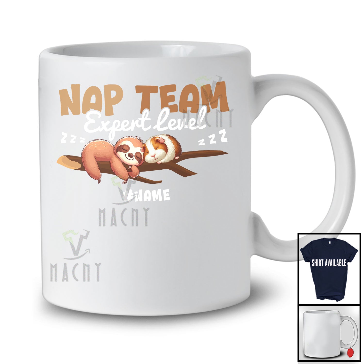 Personalized Custom Name Nap Team Expert Level; Lovely Kawaii Guinea Pig And Sloth Sleeping T-Shirt. This cotton t-shirt is a durable staple product with a classic fit. One of the most popular items, it has a relaxed style made for everyday and casual wear.