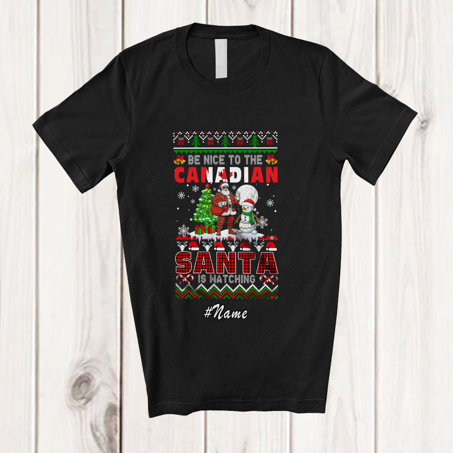 Personalized Custom Name Nice To The Canadian; Amazing Christmas Sweater Santa Snowman T-Shirt