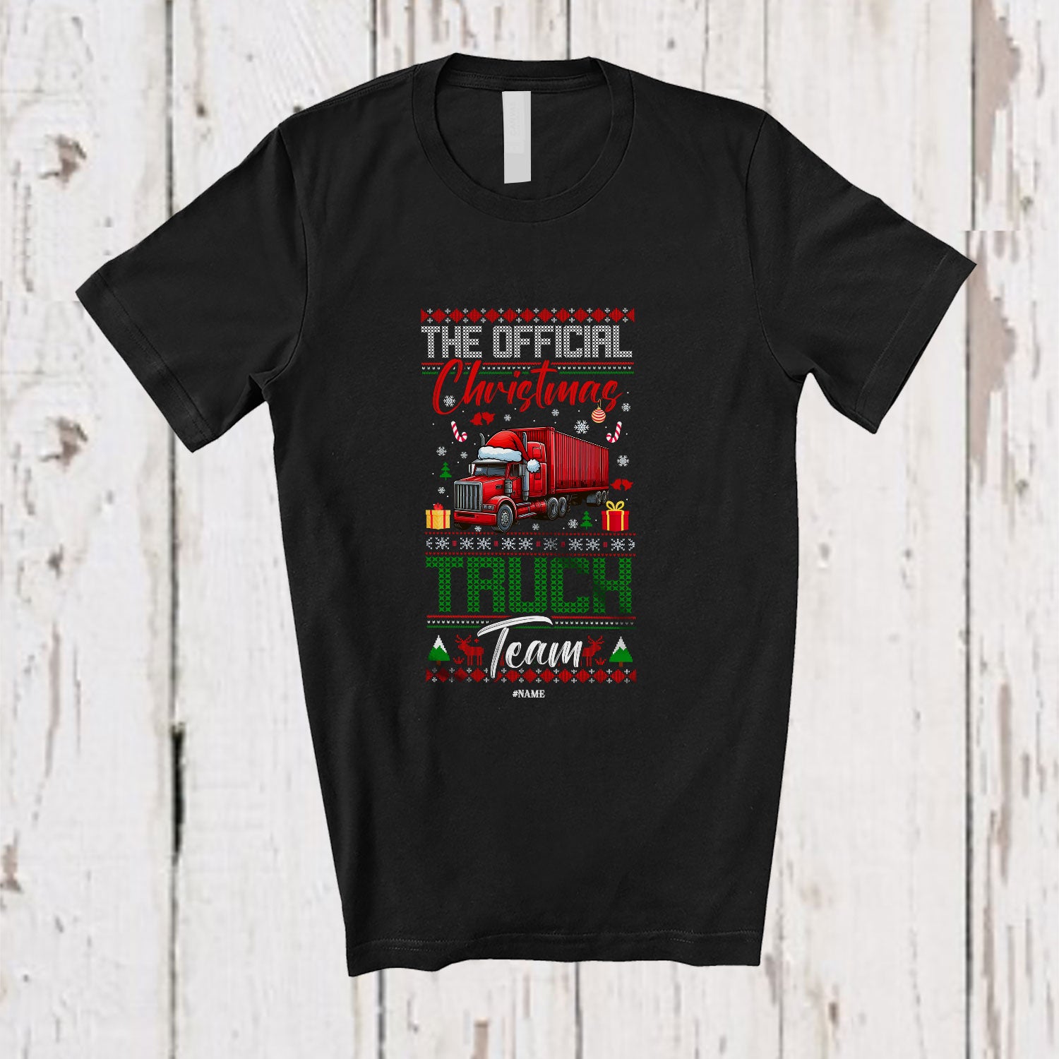 Personalized Custom Name Official Christmas Truck Team; Lovely X-mas Sweater Driver T-Shirt. This cotton t-shirt is a durable staple product with a classic fit. One of the most popular items, it has a relaxed style made for everyday and casual wear.