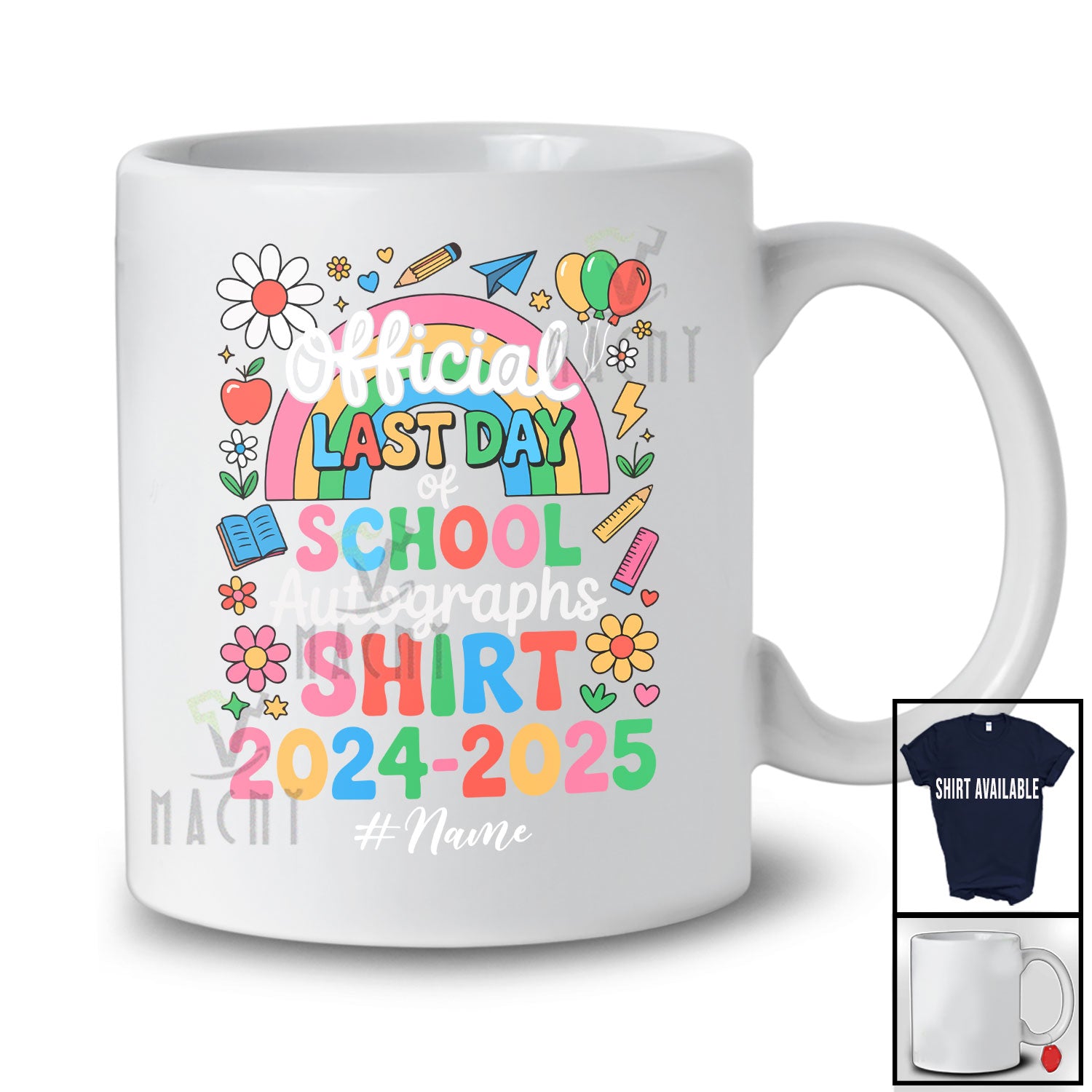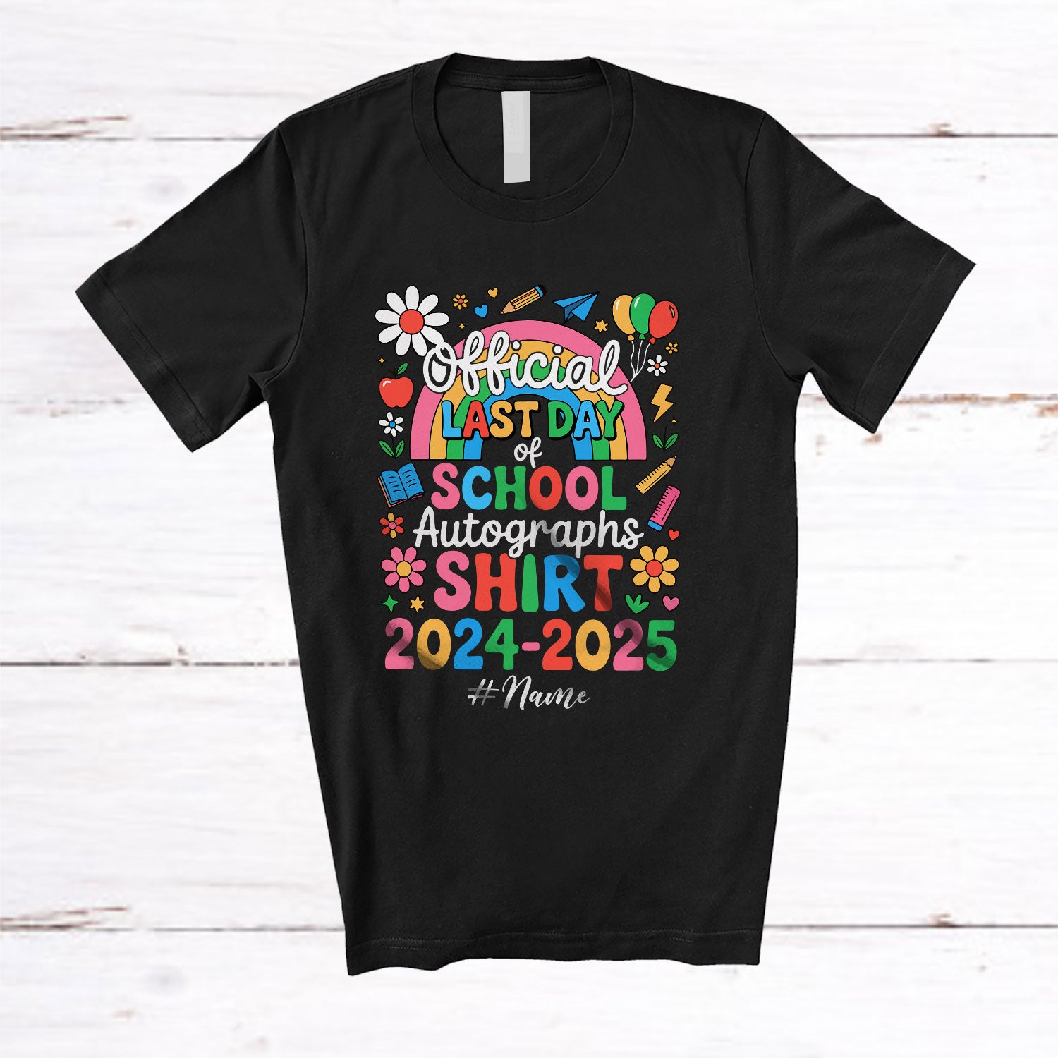 Every product is unique, just like you. If you're looking for a product that fits the mold of your life, the Personalized Custom Name Official Last Day Of School 2024 2025; Colorful Summer Rainbow Teacher T-Shirt is for you.