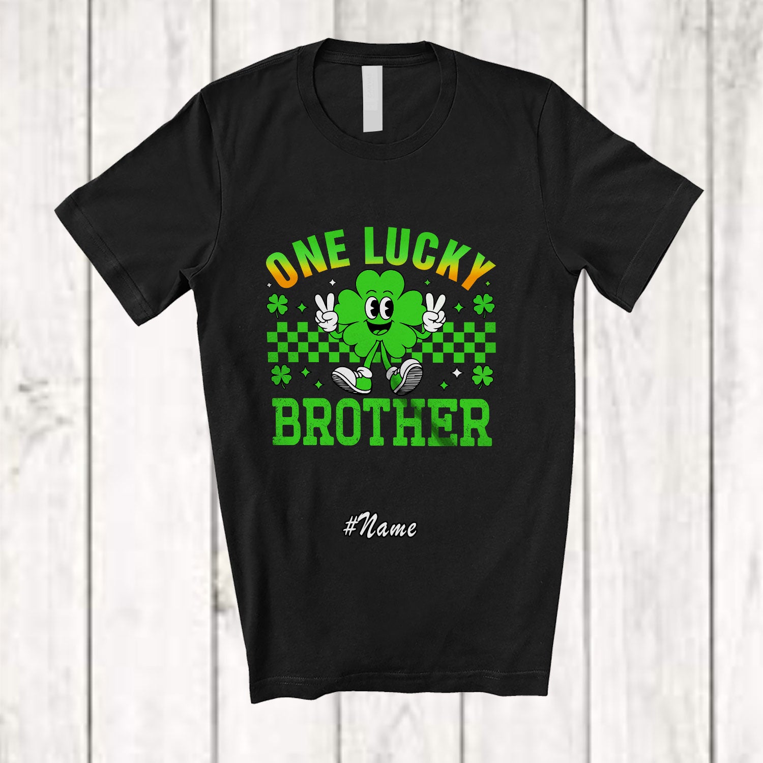 Personalized Custom Name One Lucky Brother; Amusing St. Patrick's Day Shamrock Irish Family T-Shirt