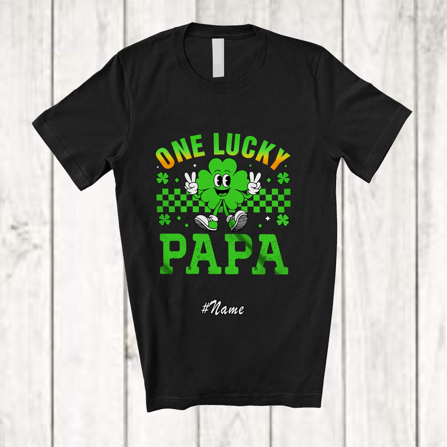 Personalized Custom Name One Lucky Papa; Amusing St. Patrick's Day Shamrock Irish Family T-Shirt