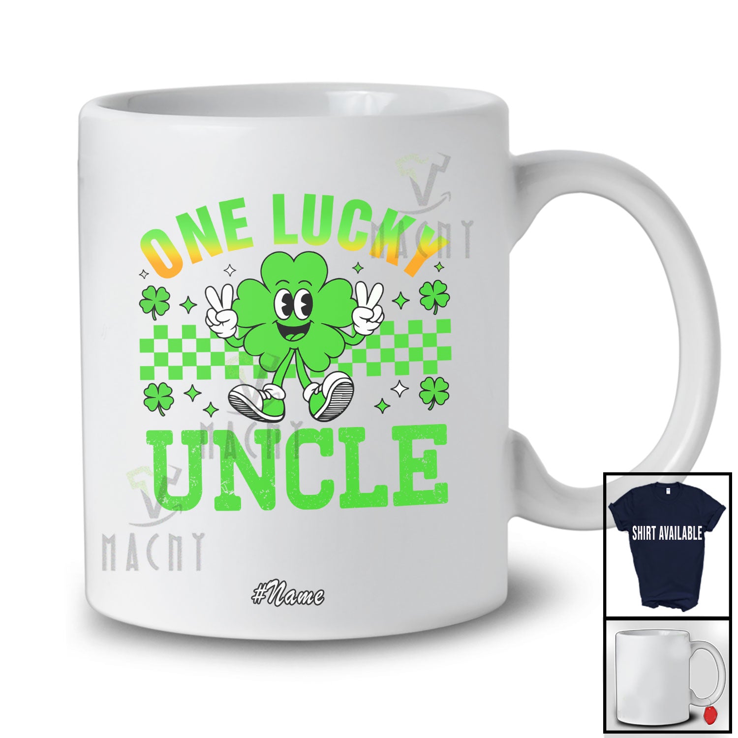 Personalized Custom Name One Lucky Uncle; Amusing St. Patrick's Day Shamrock Irish Family T-Shirt. This cotton t-shirt is a durable staple product with a classic fit. One of the most popular items, it has a relaxed style made for everyday and casual wear.