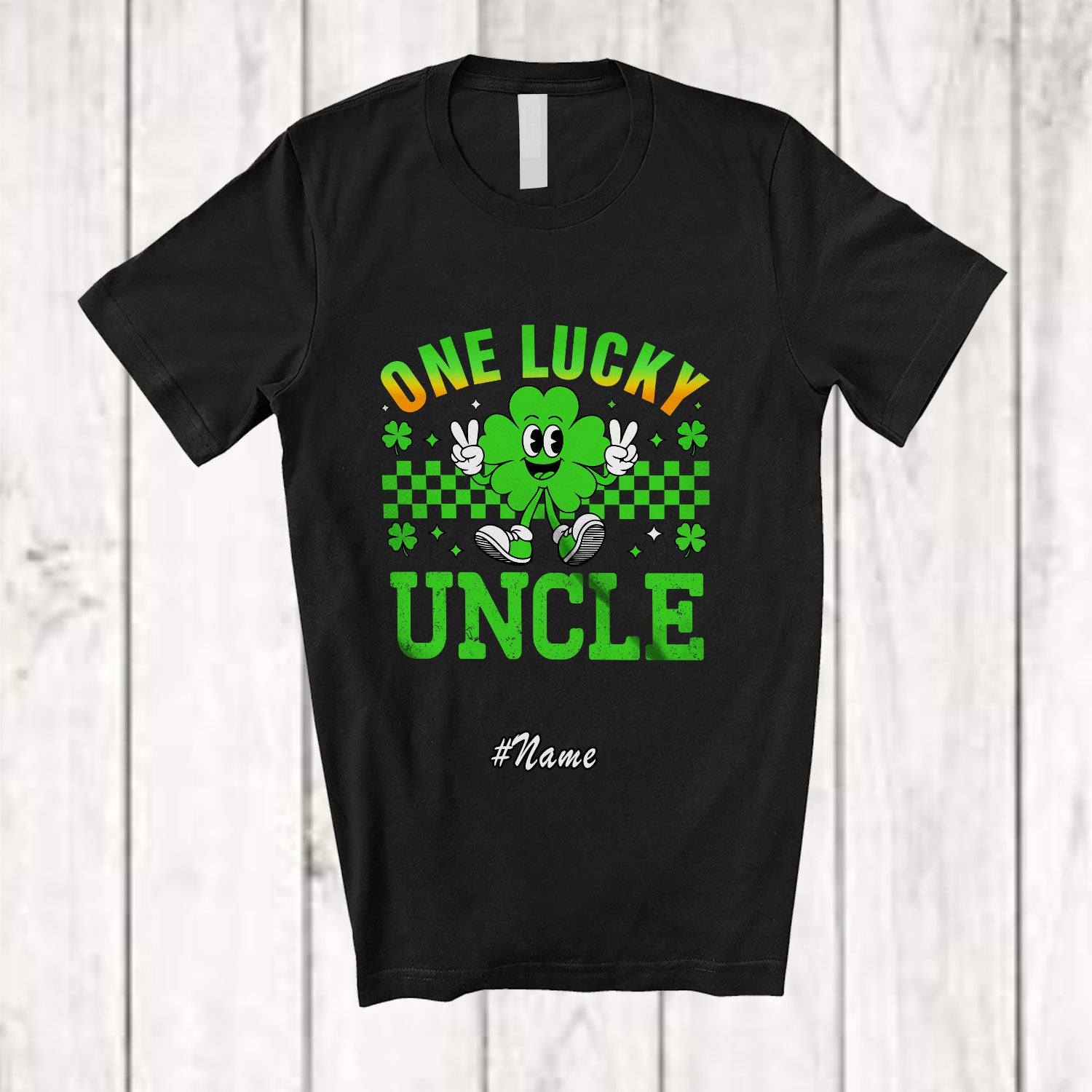 Personalized Custom Name One Lucky Uncle; Amusing St. Patrick's Day Shamrock Irish Family T-Shirt