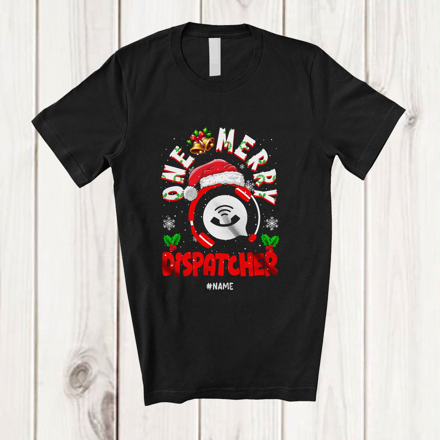 Personalized Custom Name One Merry Dispatcher; Fantastic Christmas Santa Jobs Careers T-Shirt