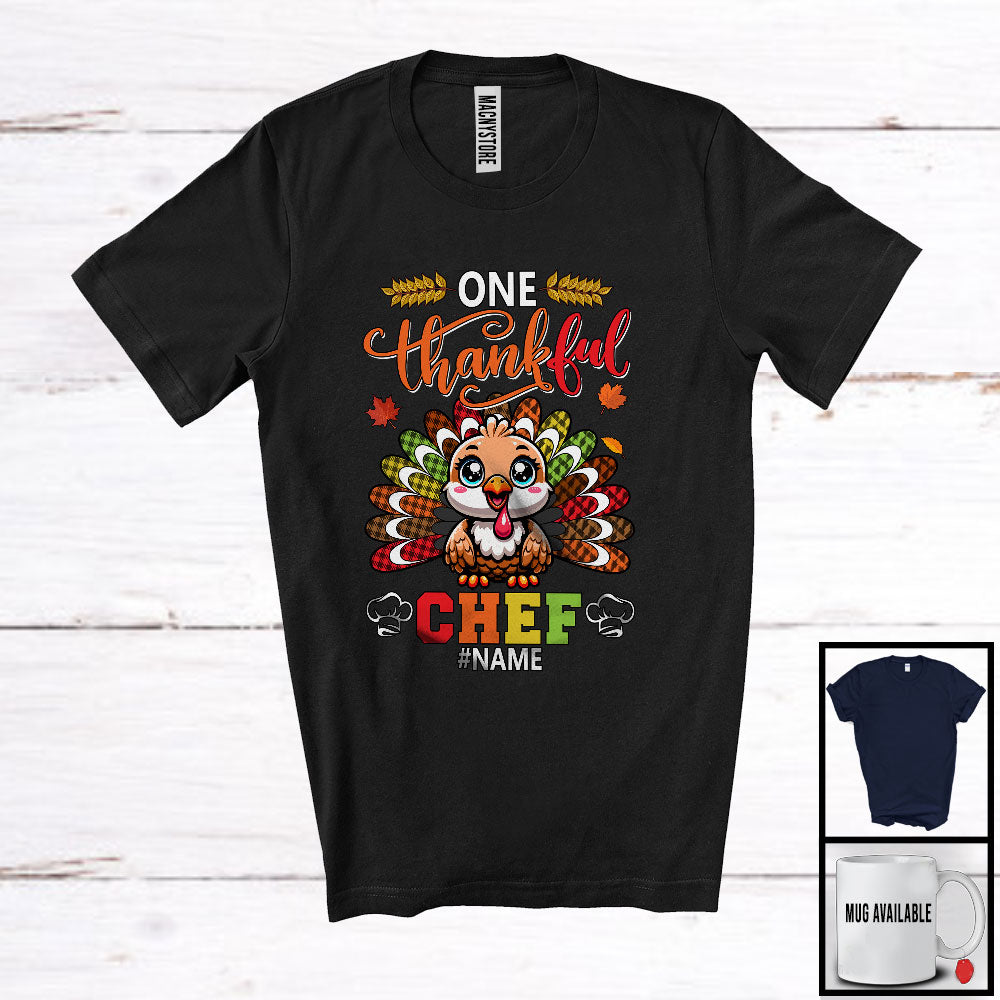 • Personalized Custom Name One Thankful Chef; Amusing Thanksgiving Turkey Plaid Tail; Jobs T-Shirt. This cotton t-shirt is a durable staple product with a classic fit. One of the most popular items, it has a relaxed style made for everyday and casual wear.