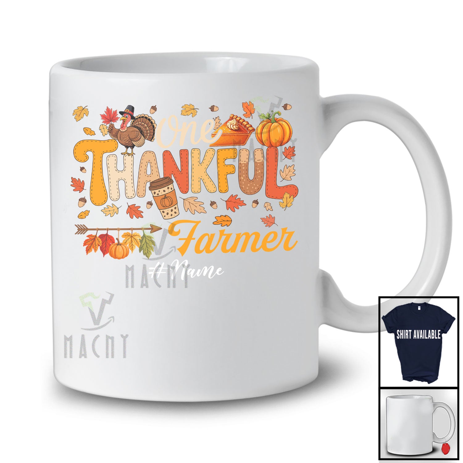 • Personalized Custom Name One Thankful Farmer; Proud Thanksgiving Jobs Fall Pumpkin Pie Turkey T-Shirt. This cotton t-shirt is a durable staple product with a classic fit. One of the most popular items, it has a relaxed style made for everyday and casual wear.