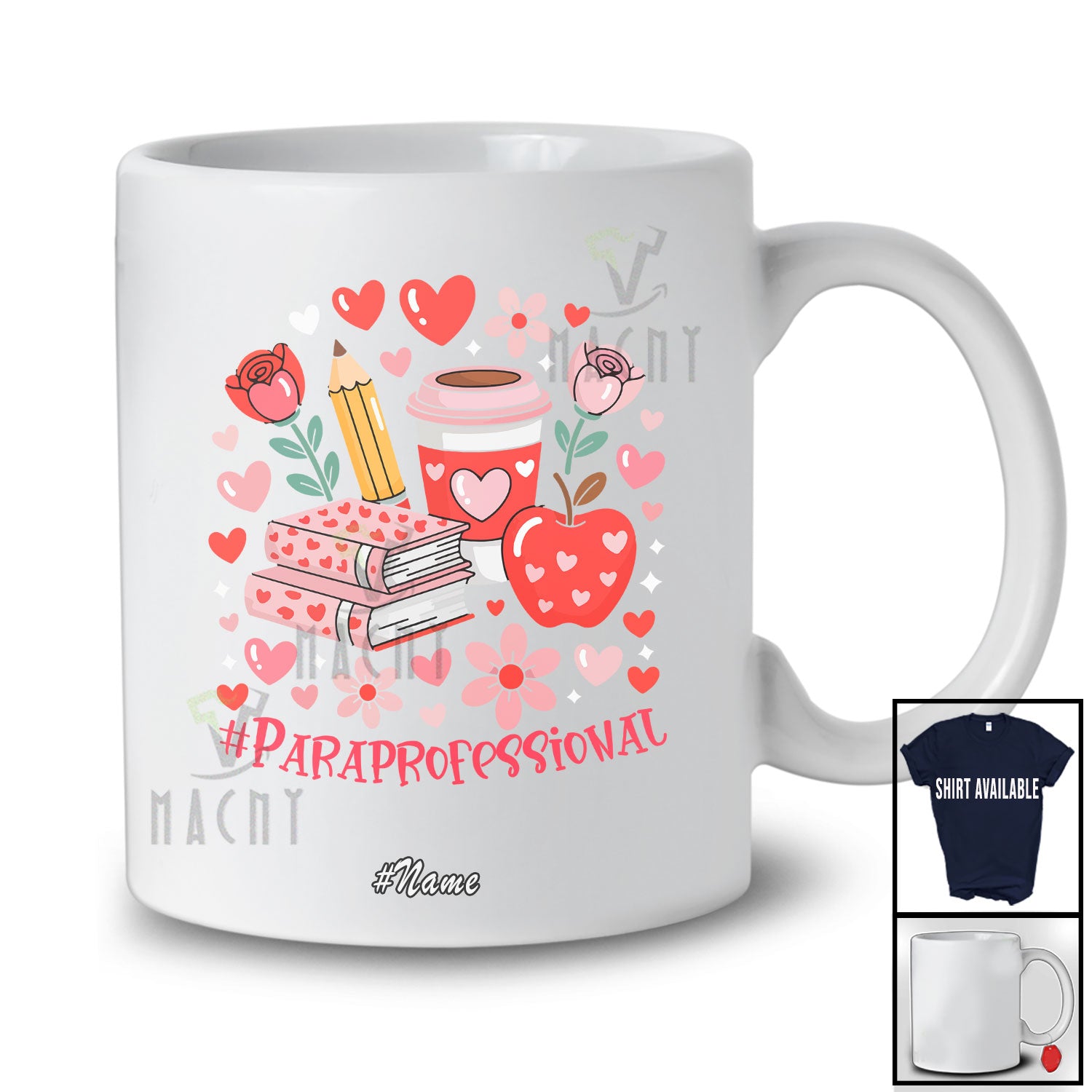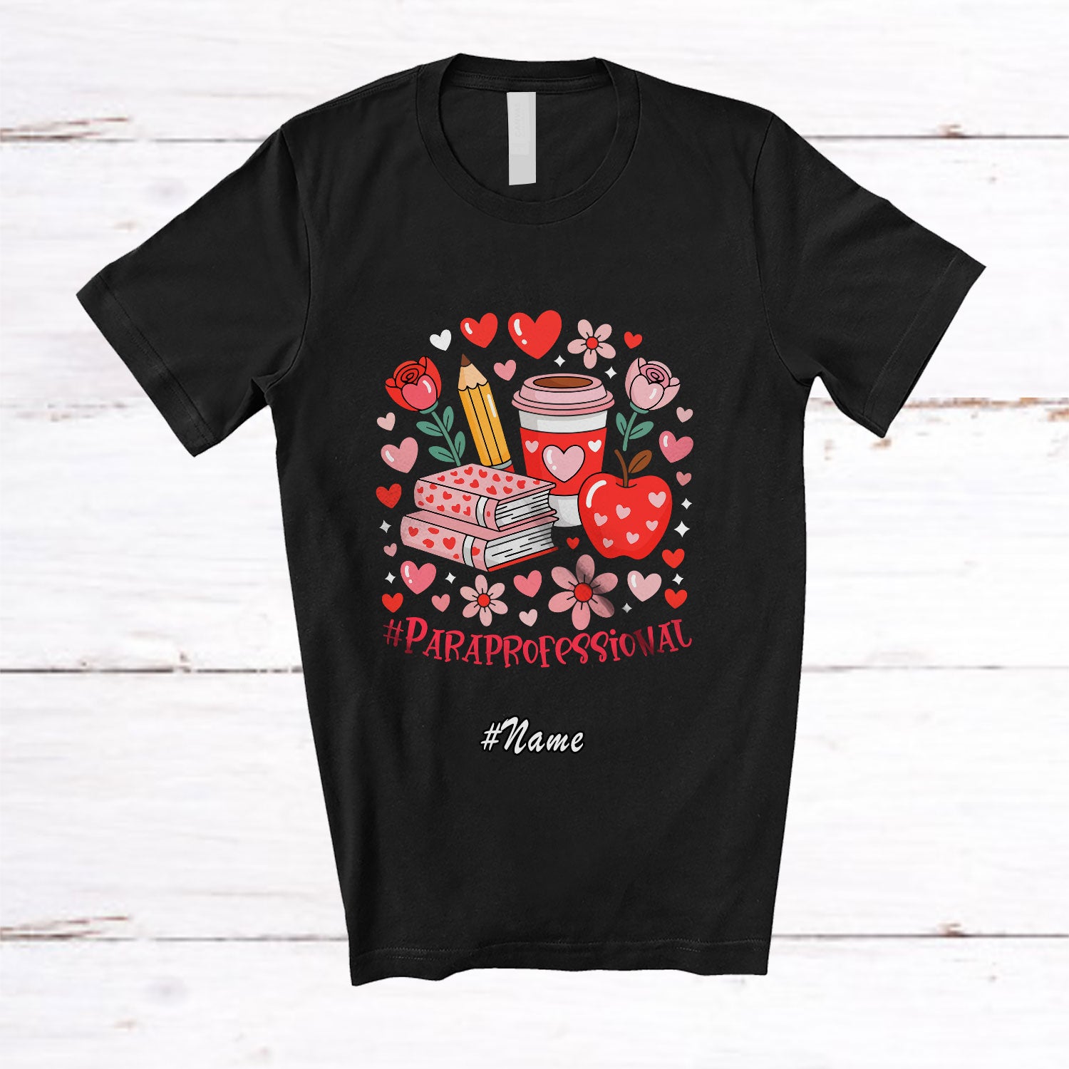 Personalized Custom Name Paraprofessional; Awesome Valentine Hearts Pink Pencil; Proud Jobs T-Shirt