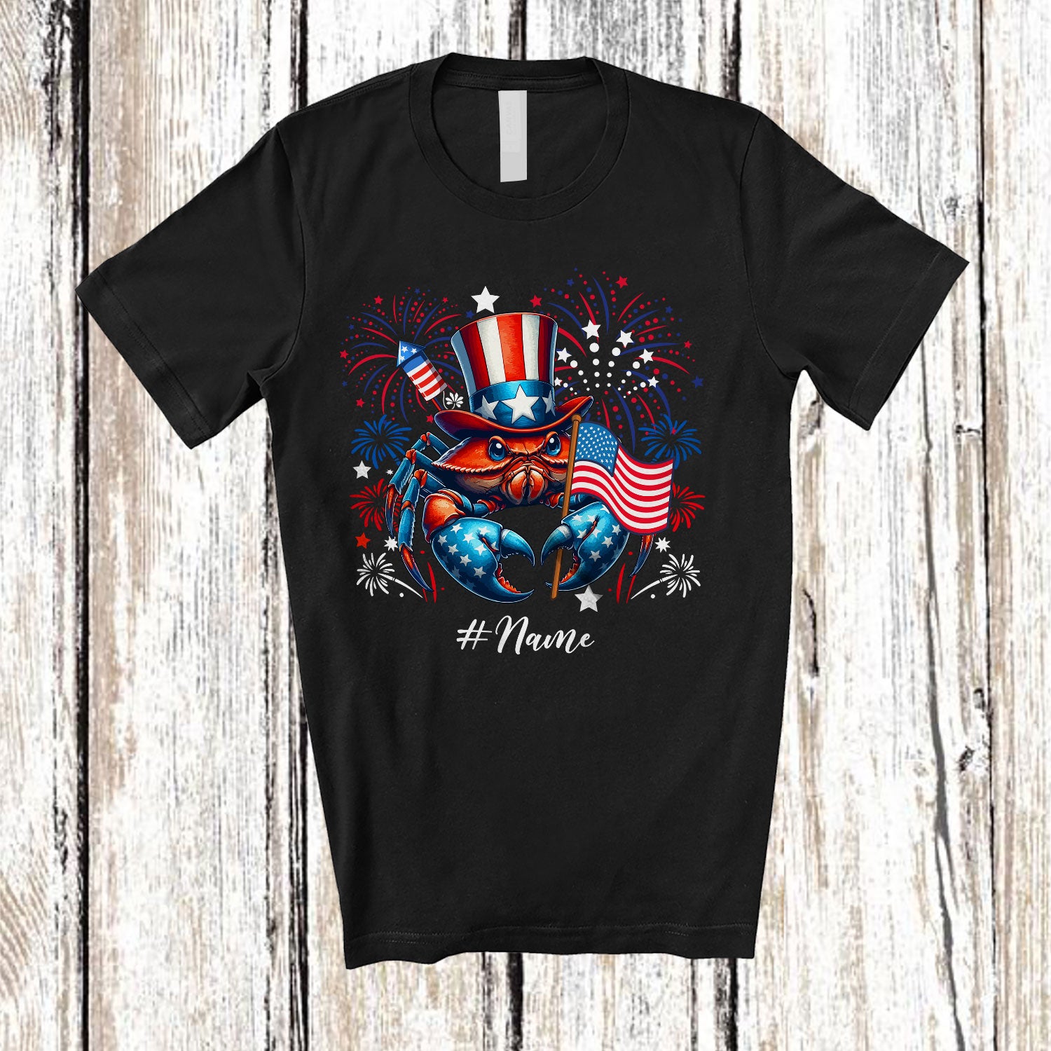 Personalized Custom Name Patriotic Crab With US Flag; Lovely 4th Of July Crab Sea Animal T-Shirt