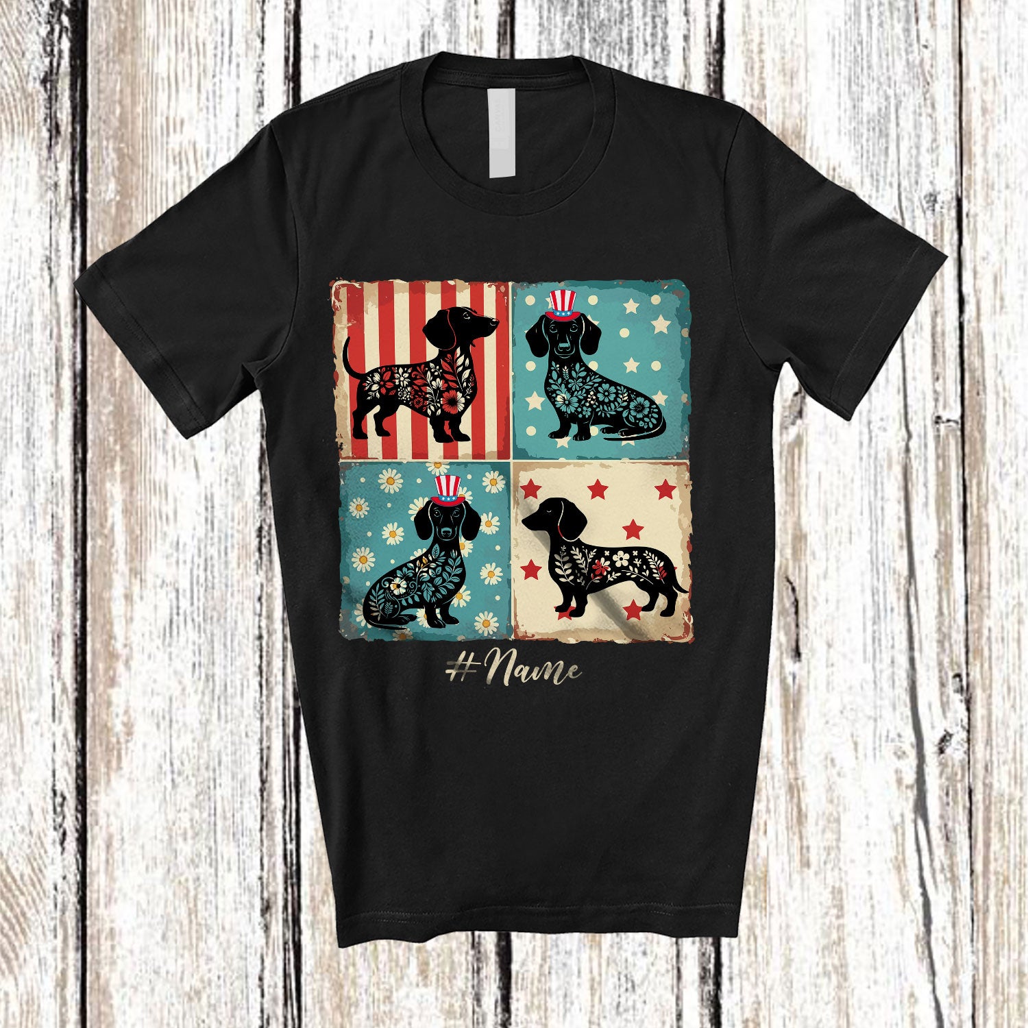 Personalized Custom Name Patriotic Floral Dachshund; Proud 4th of July Red Blue White Dachshund Owner T-Shirt
