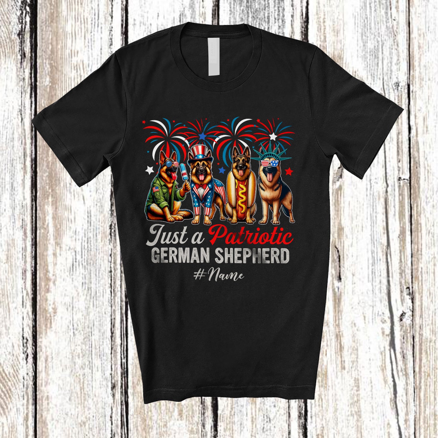 Personalized Custom Name Patriotic German Shepherd; Lovely 4th Of July Liberty Hot Dog; Patriotic T-Shirt
