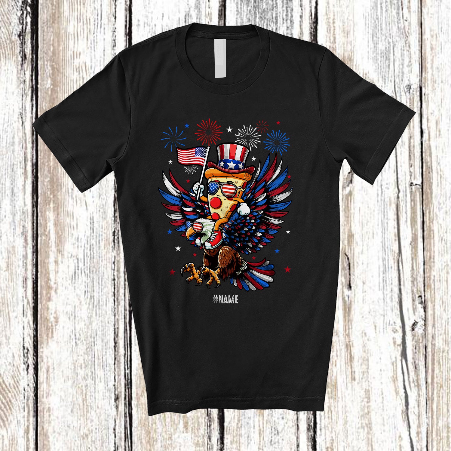 Personalized Custom Name Patriotic Squad; Joyful 4th Of July Pizza Riding Eagle Food Lover T-Shirt