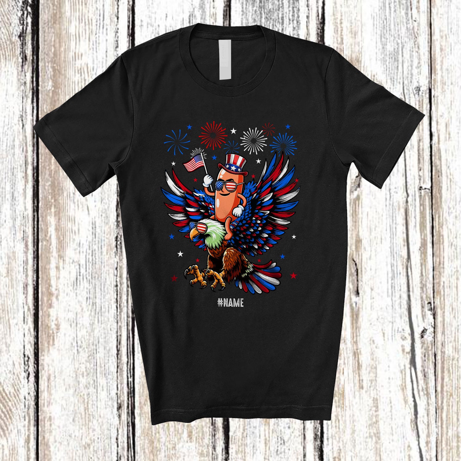 Personalized Custom Name Patriotic Squad; Joyful 4th Of July Sausage Riding Eagle Food Lover T-Shirt