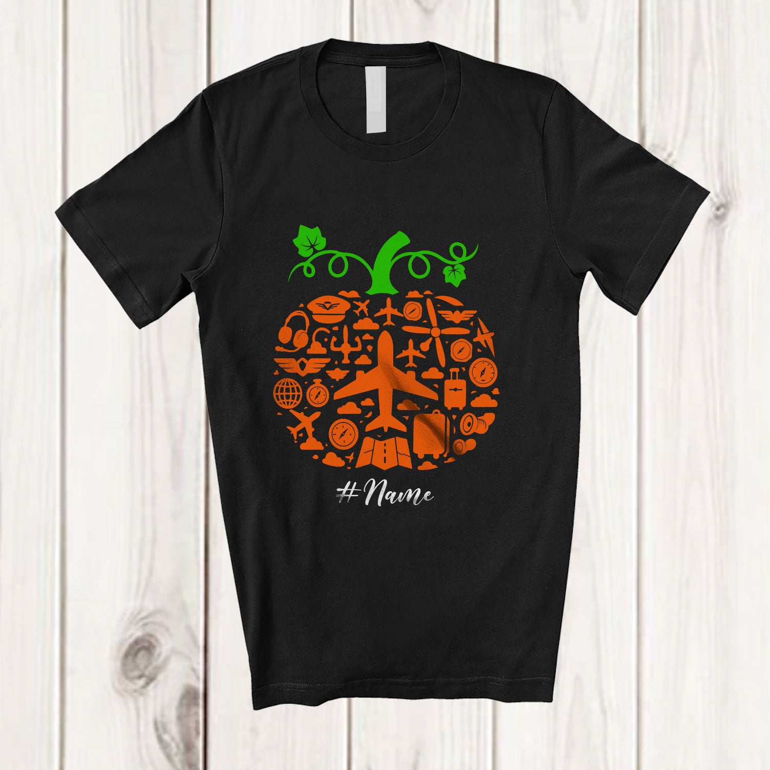 Personalized Custom Name Pilot Tools Pumpkin Shape; Lovely Thanksgiving Halloween Pilot Family T-Shirt. This cotton t-shirt is a durable staple product with a classic fit. One of the most popular items, it has a relaxed style made for everyday and casual wear.