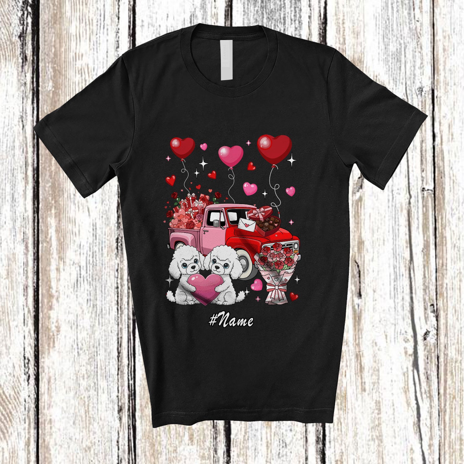 Personalized Custom Name Pink Poodle Pickup Truck; Lovely Valentine Hearts Couple Lover T-Shirt