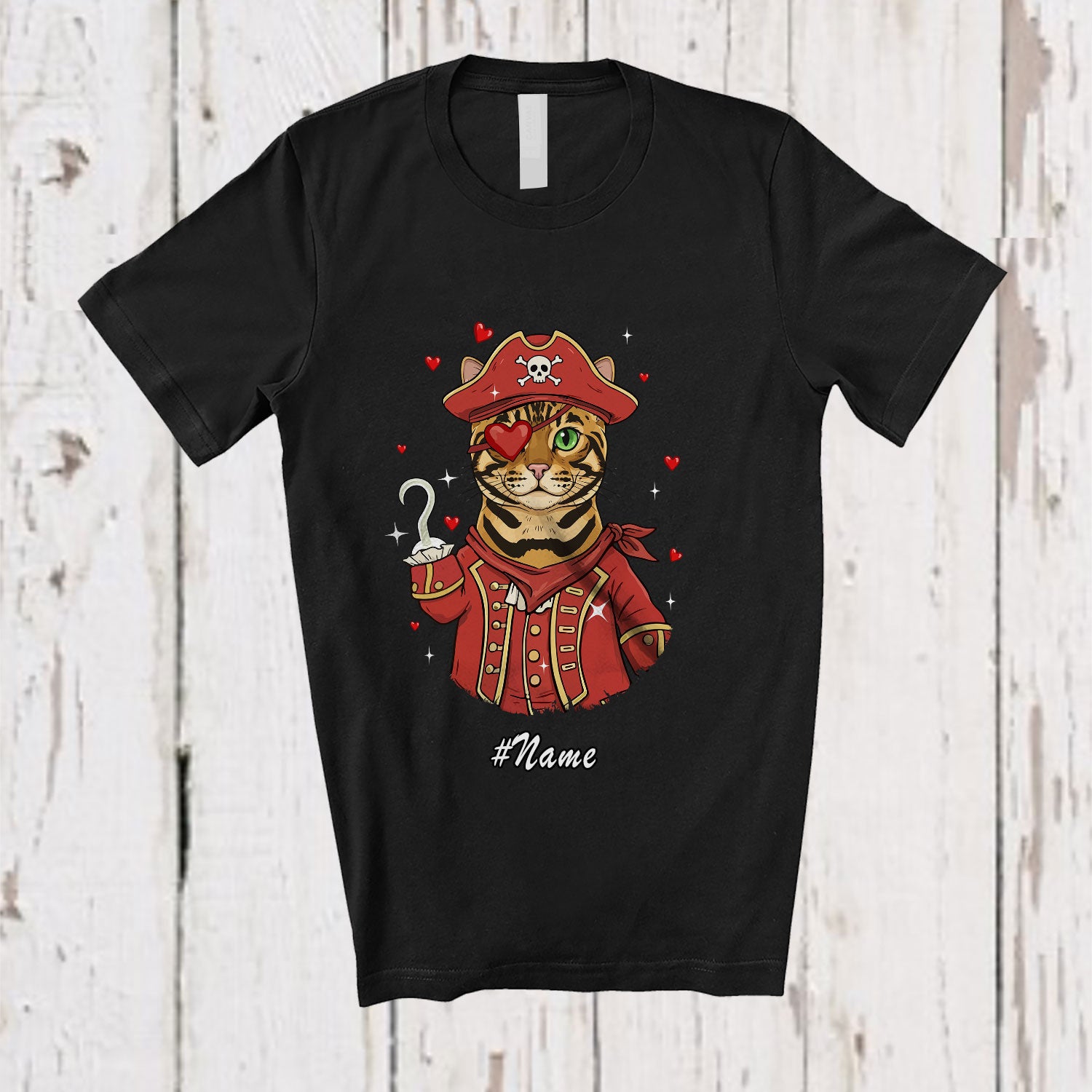 Personalized Custom Name Pirate Bengal Cat Valentine; Amazing Hearts Kitten Owner Lover T-Shirt