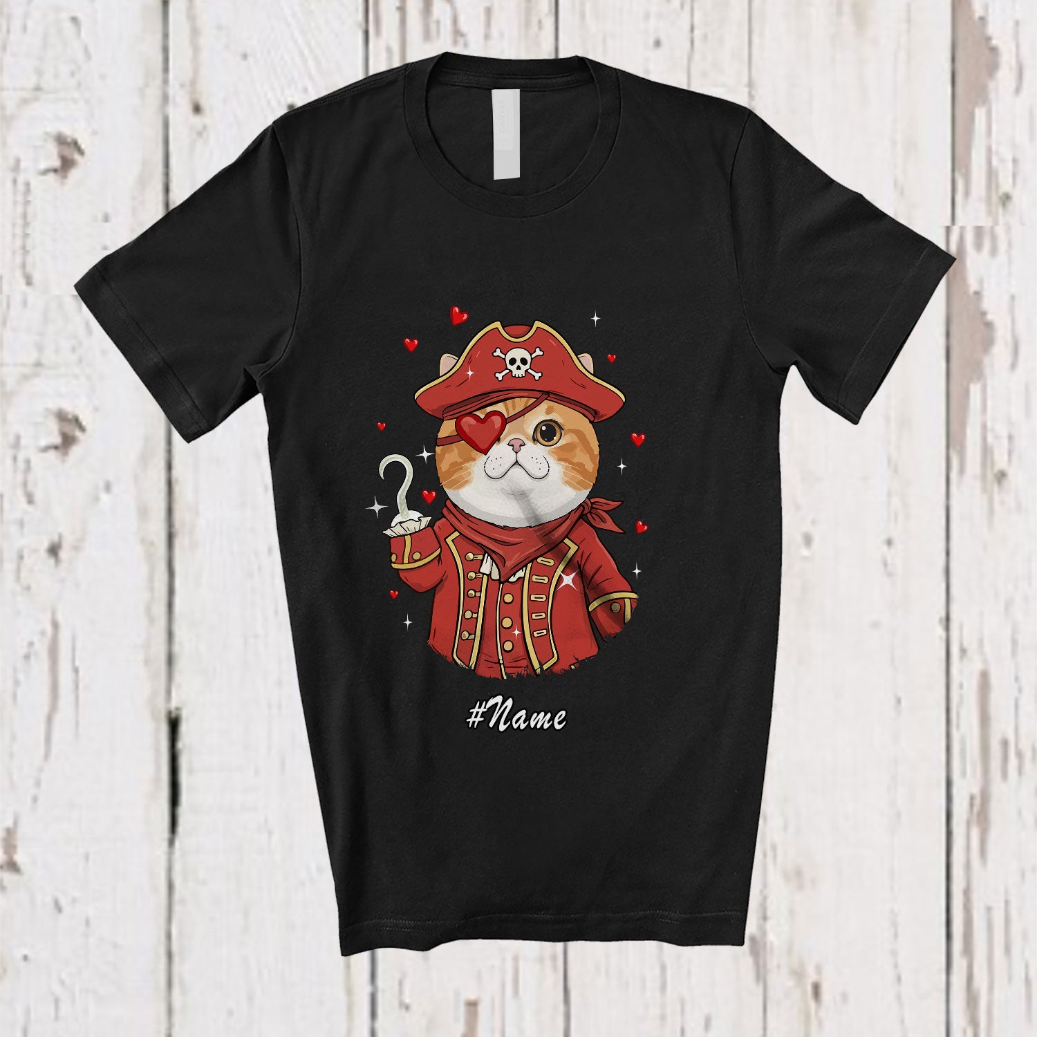 Personalized Custom Name Pirate Exotic Shorthair Cat Valentine; Amazing Hearts Kitten Owner Lover T-Shirt. This cotton t-shirt is a durable staple product with a classic fit. One of the most popular items, it has a relaxed style made for everyday and casual wear.