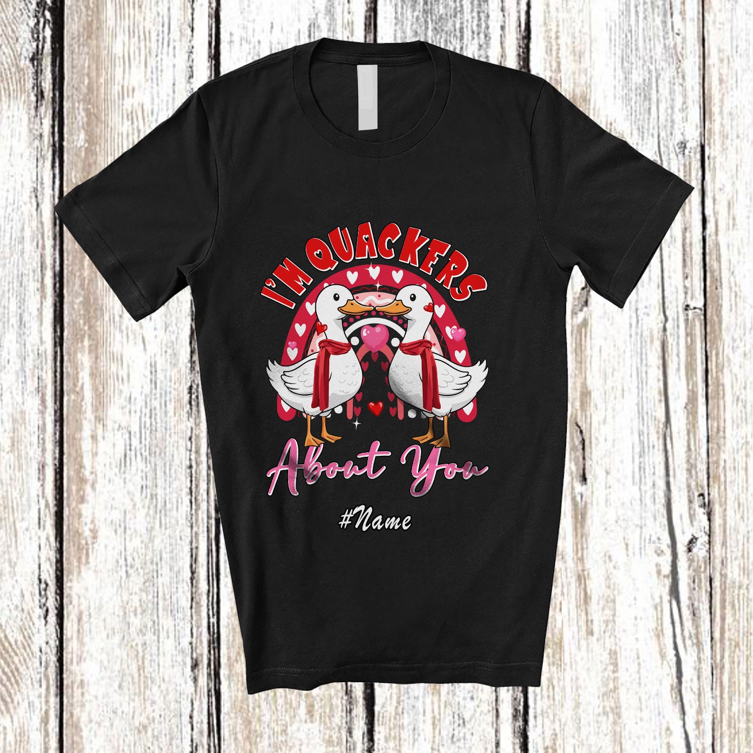 This Personalized Custom Name Quackers You; Humorous Valentine Hearts Couple Duck Farmer Rainbow T-Shirt is great idea gift for your family, friends in this birthday, christmas, mother's day, father's day, patrick's day or any holiday.