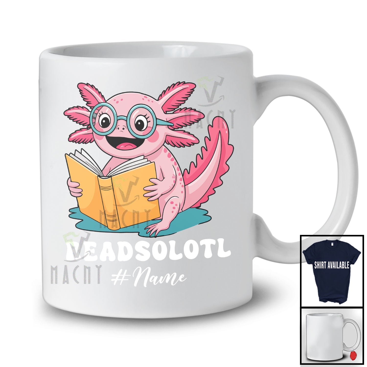 new MacnyStore - Personalized Custom Name Readolotl; Adorable Kawaii Axolotls Reading Girl Lover; Family T-Shirt – Macnystore