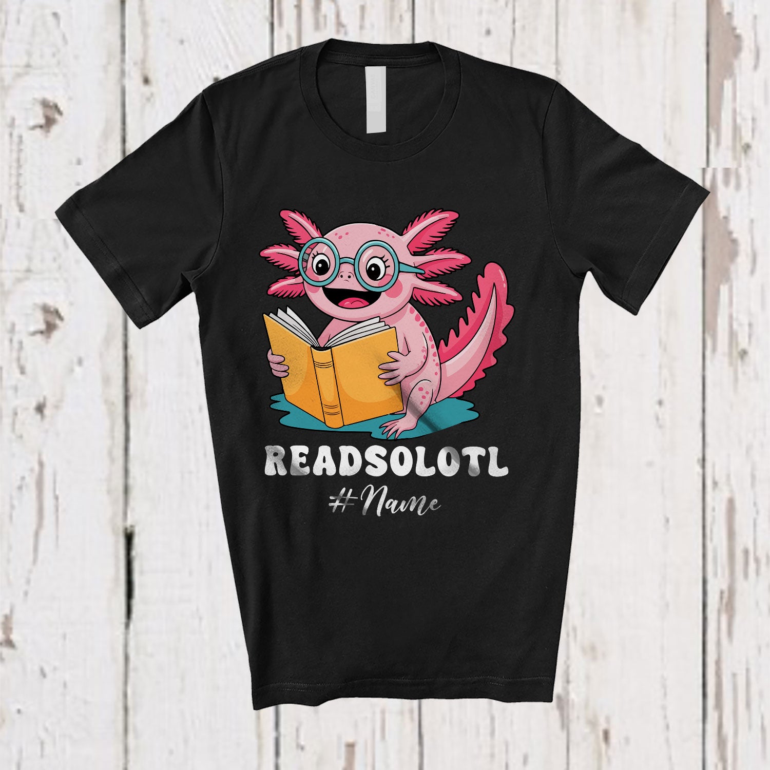 Personalized Custom Name Readolotl; Adorable Kawaii Axolotls Reading Girl Lover; Family T-Shirt