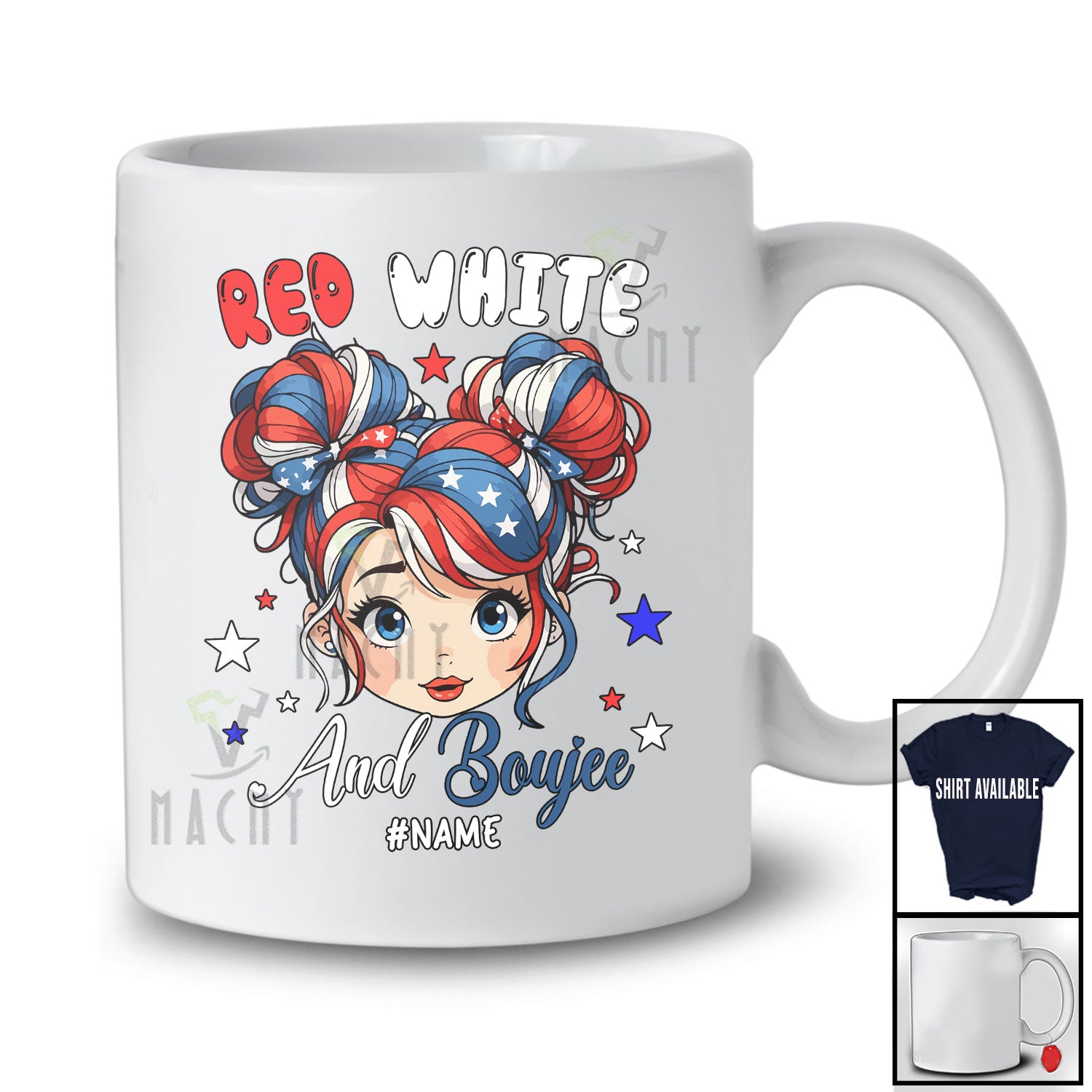 This Personalized Custom Name Red White And Boujee; Lovely 4th Of July Messy Bun Hair Girl Patriotic T-Shirt is great idea gift for your family, friends in this birthday, christmas, mother's day, father's day, patrick's day or any holiday.