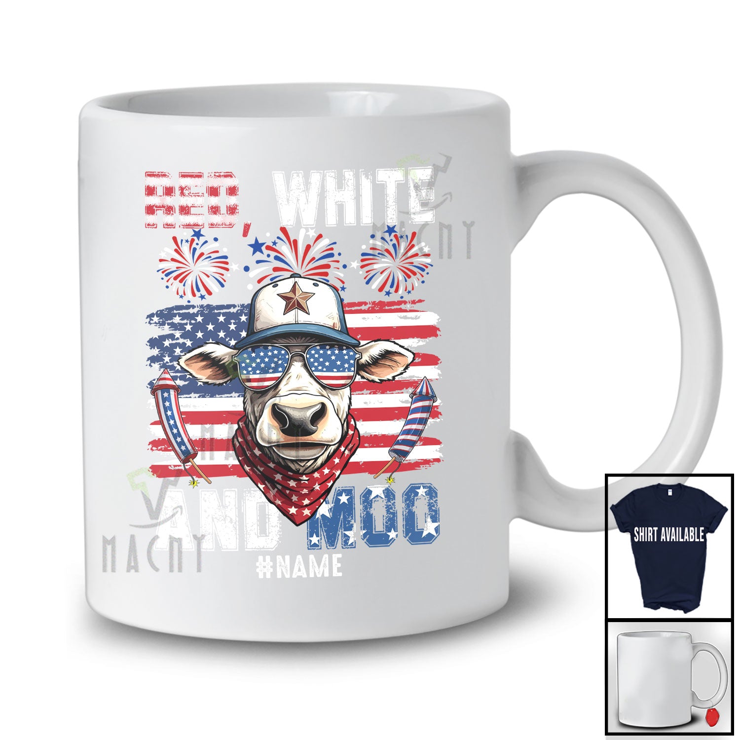 Personalized Custom Name Red White and Moo; Wonderful 4th Of July Cow US Flag; Farmer Patriotic T-Shirt. This cotton t-shirt is a durable staple product with a classic fit. One of the most popular items, it has a relaxed style made for everyday and casual wear.