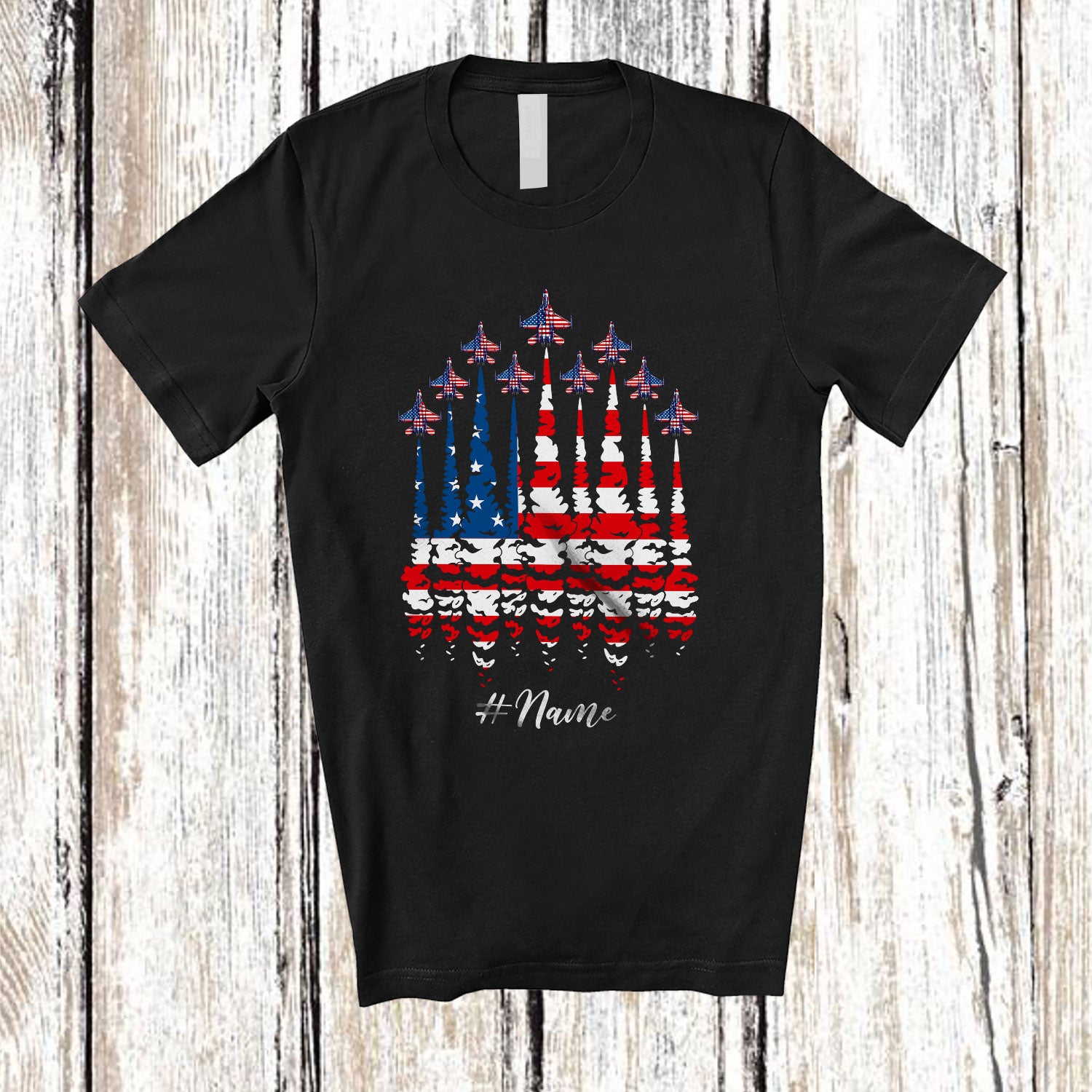 Personalized Custom Name Red White Blue Airplane; Proud 4th Of July US Flag Patriotic Pilot T-Shirt