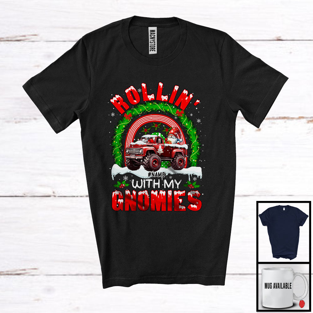 • Personalized Custom Name Rollin' With My Gnomies; Joyful Christmas Gnome Pickup; Rainbow T-Shirt. This cotton t-shirt is a durable staple product with a classic fit. One of the most popular items, it has a relaxed style made for everyday and casual wear.