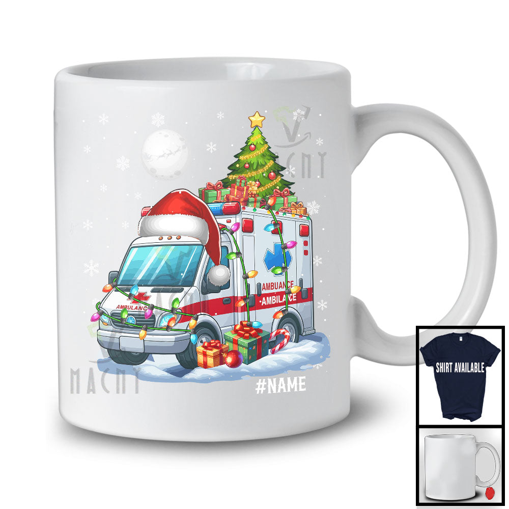 new MacnyStore - Personalized Custom Name Santa Ambulance Carrying Christmas Tree; Joyful X-mas Moon; Driver T-Shirt – Macnystore