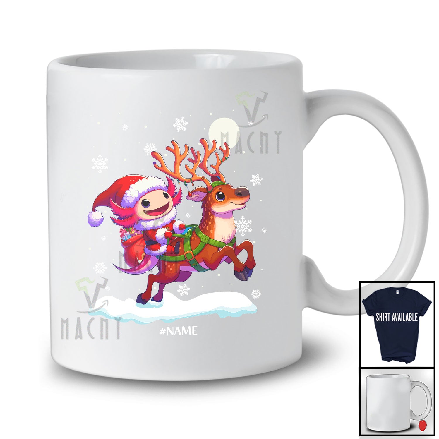 new MacnyStore - Personalized Custom Name Santa Axolotl Riding Reindeer; Amusing Christmas Animal Lover T-Shirt – Macnystore