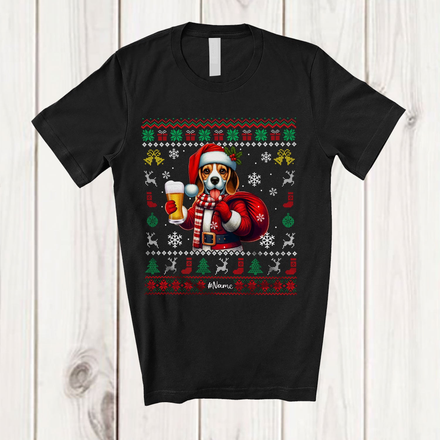 Personalized Custom Name Santa Beagle Drinking Beer; Fantastic Christmas Sweater Drunker T-Shirt