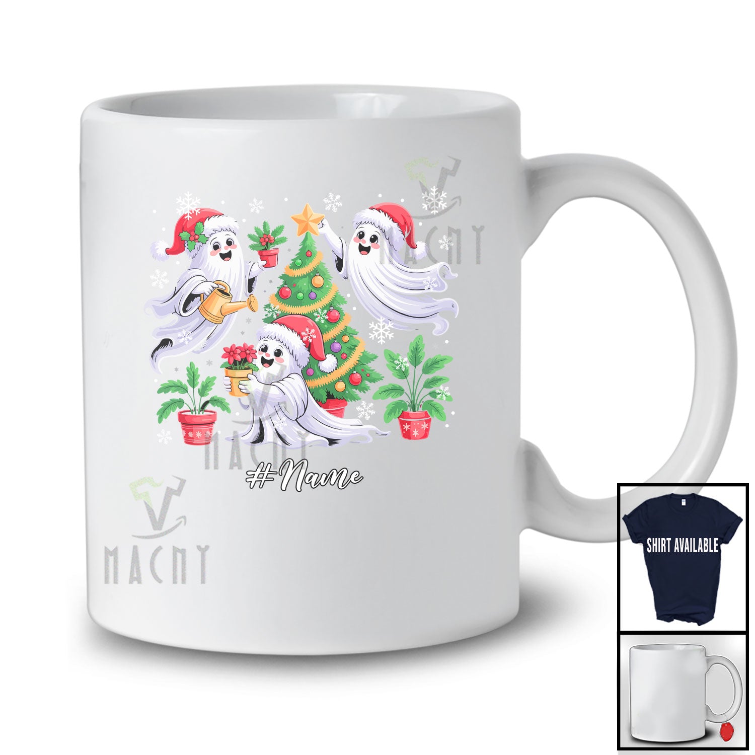 Personalized Custom Name Santa Boo Building Christmas Tree; Lovely X-mas Boo Ghost Gardener T-Shirt. This cotton t-shirt is a durable staple product with a classic fit. One of the most popular items, it has a relaxed style made for everyday and casual wear.