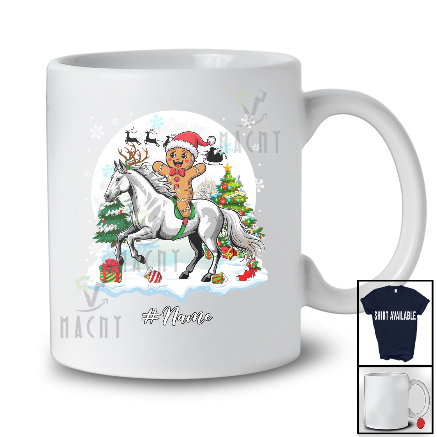 • Personalized Custom Name Santa Gingerbread Man Riding Horse; Awesome Christmas Moon Baker T-Shirt. This cotton t-shirt is a durable staple product with a classic fit. One of the most popular items, it has a relaxed style made for everyday and casual wear.