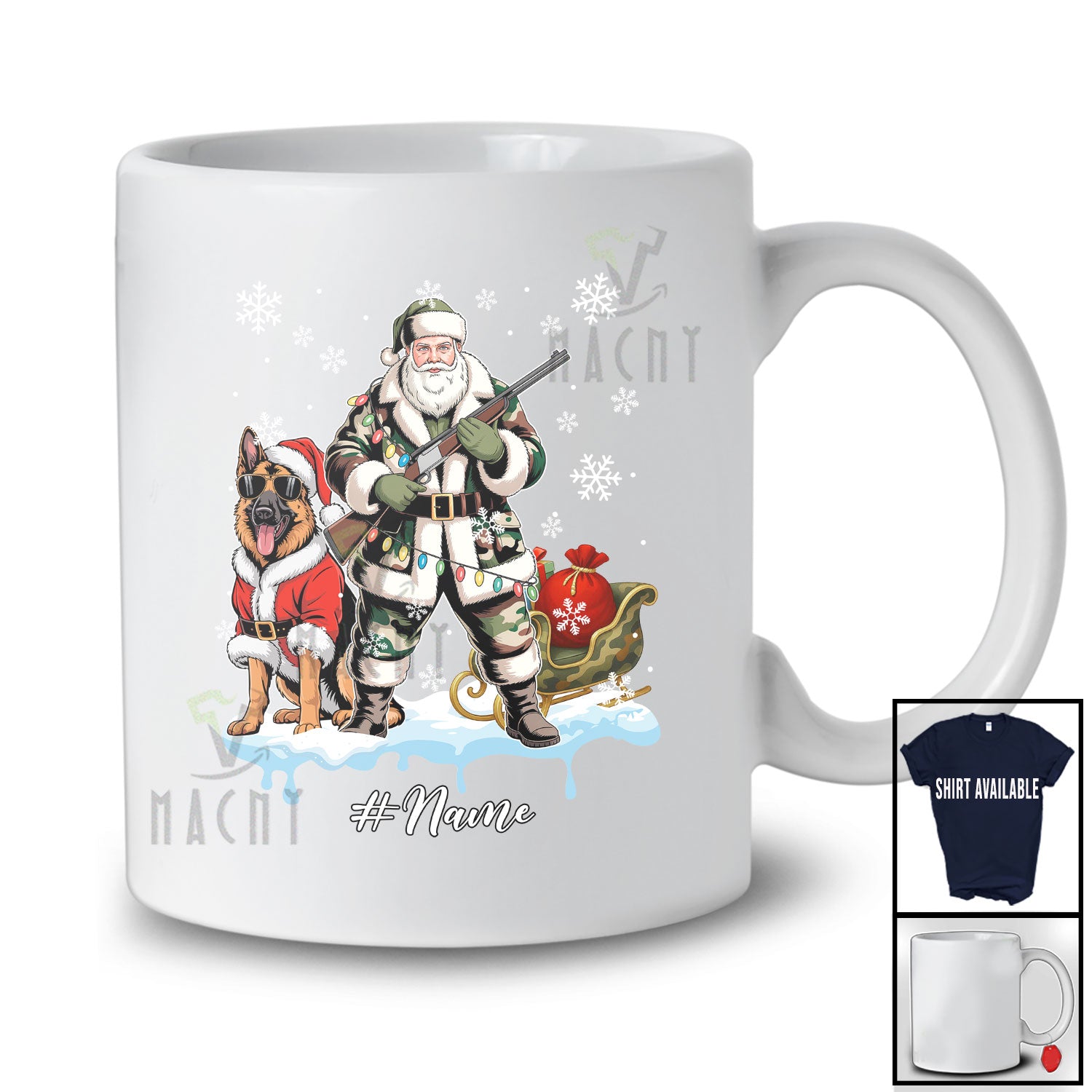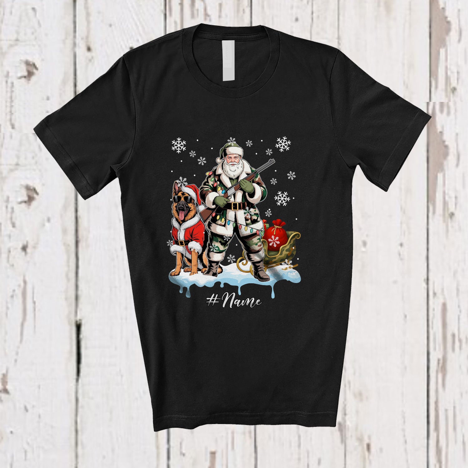 • Personalized Custom Name Santa Go Hunting German Shepherd; Awesome Christmas Lights Hunter T-Shirt. This cotton t-shirt is a durable staple product with a classic fit. One of the most popular items, it has a relaxed style made for everyday and casual wear.