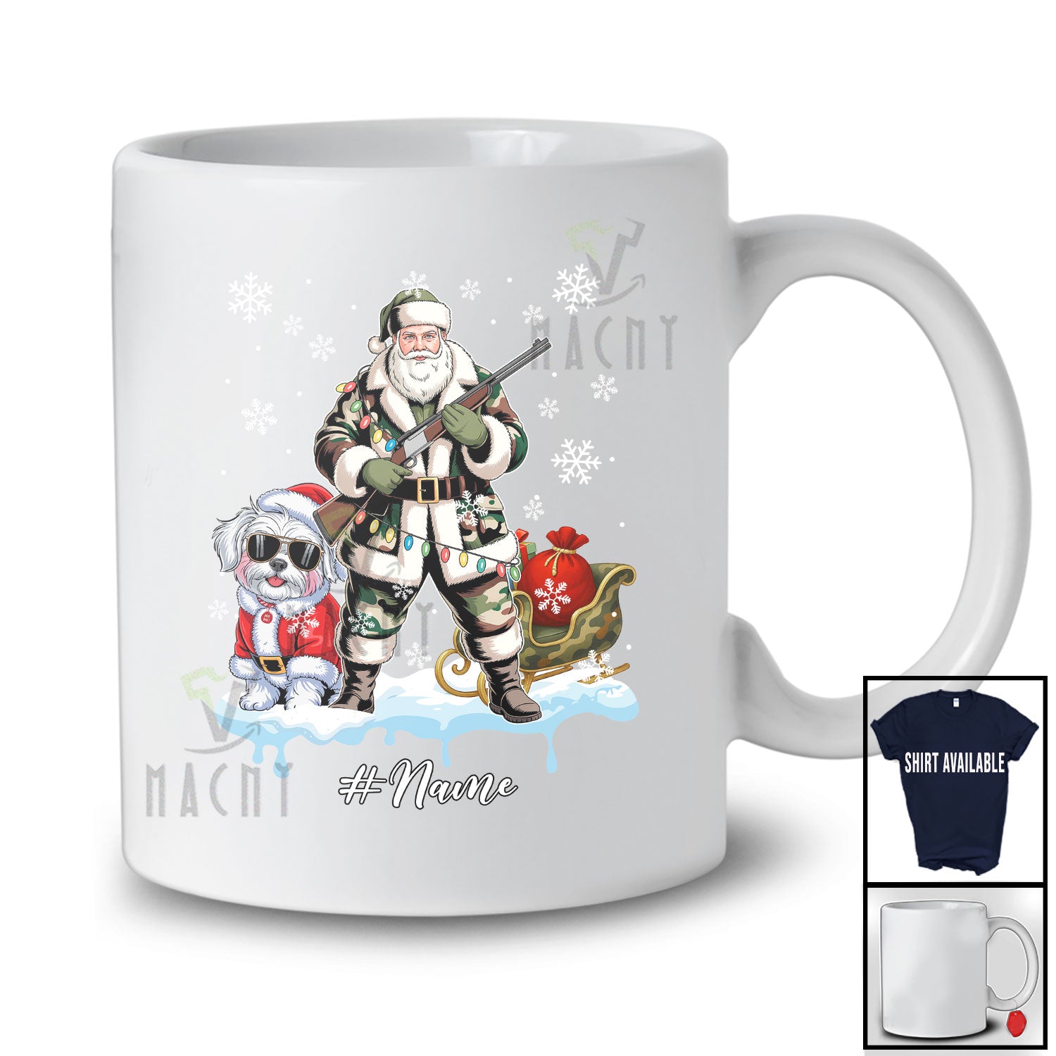 Personalized Custom Name Santa Go Hunting Maltese; Awesome Christmas Lights Hunter T-Shirt. This cotton t-shirt is a durable staple product with a classic fit. One of the most popular items, it has a relaxed style made for everyday and casual wear.