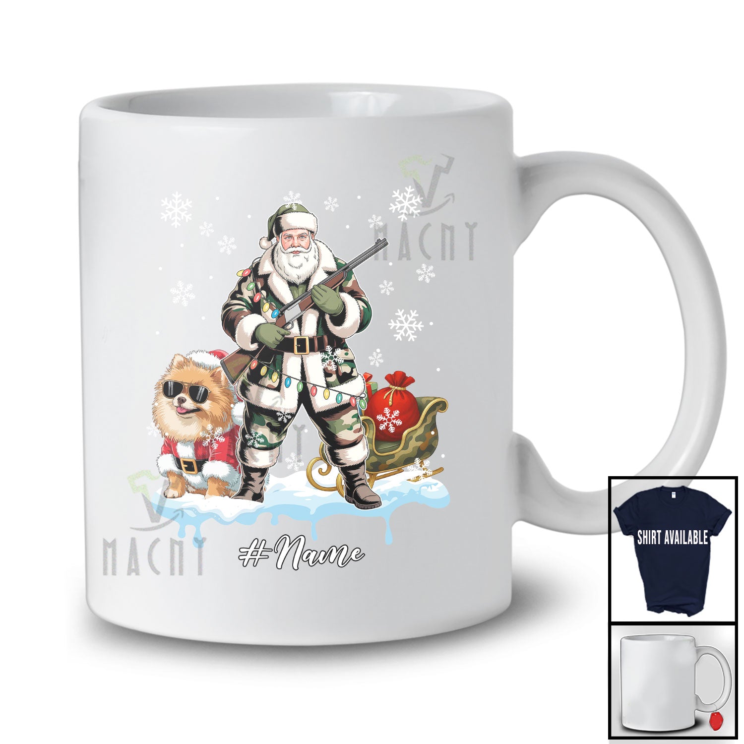 Every product is unique, just like you. If you're looking for a product that fits the mold of your life, the Personalized Custom Name Santa Go Hunting Pomeranian; Awesome Christmas Lights Hunter T-Shirt is for you.