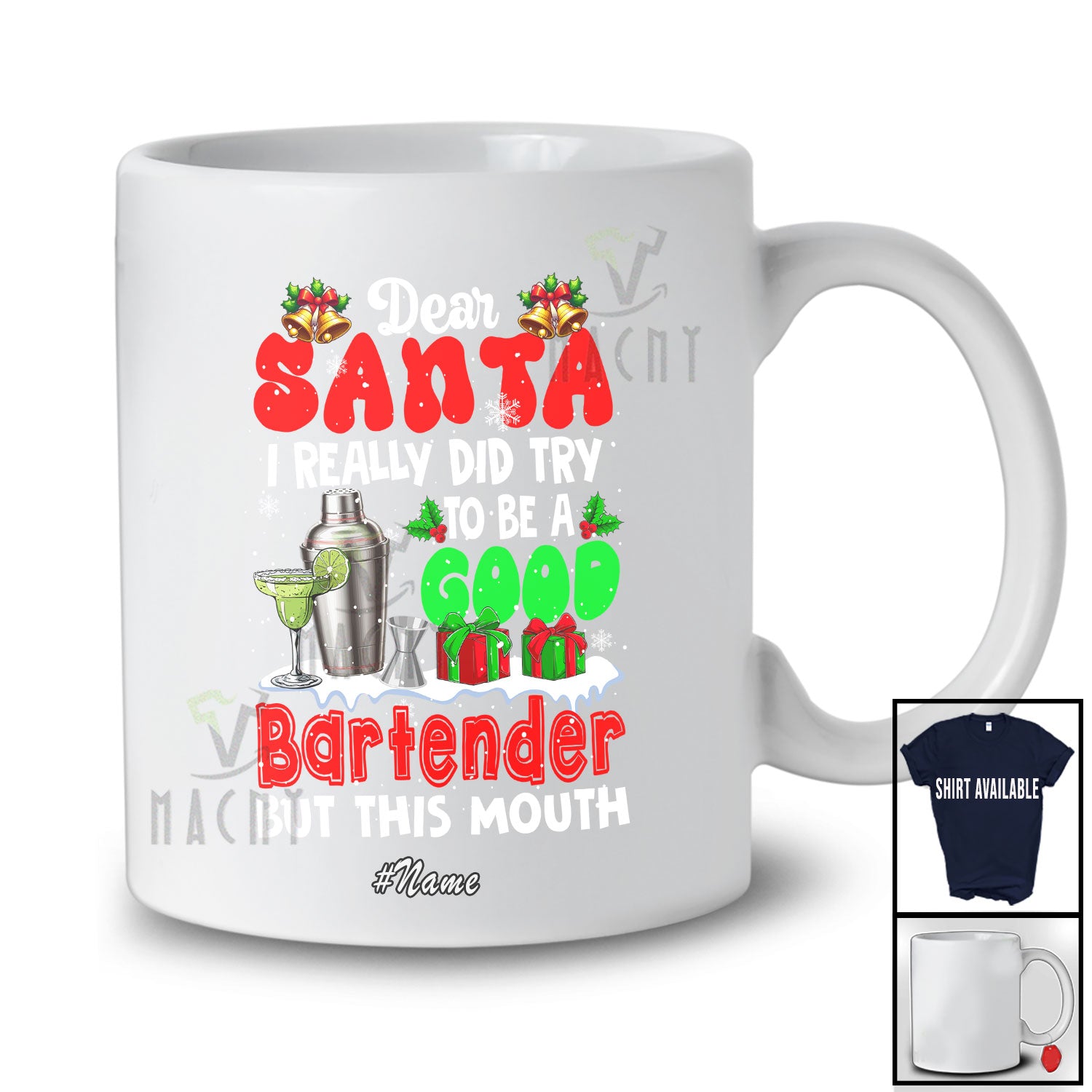 This Personalized Custom Name Santa I Did Try Be A Good Bartender; Proud Christmas Jobs Family T-Shirt is great idea gift for your family, friends in this birthday, christmas, mother's day, father's day, patrick's day or any holiday.