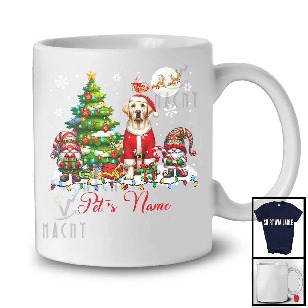 Personalized Custom Name Santa Labrador Retriever With Gnome, Lovely X-mas Tree, Snow Around T-Shirt