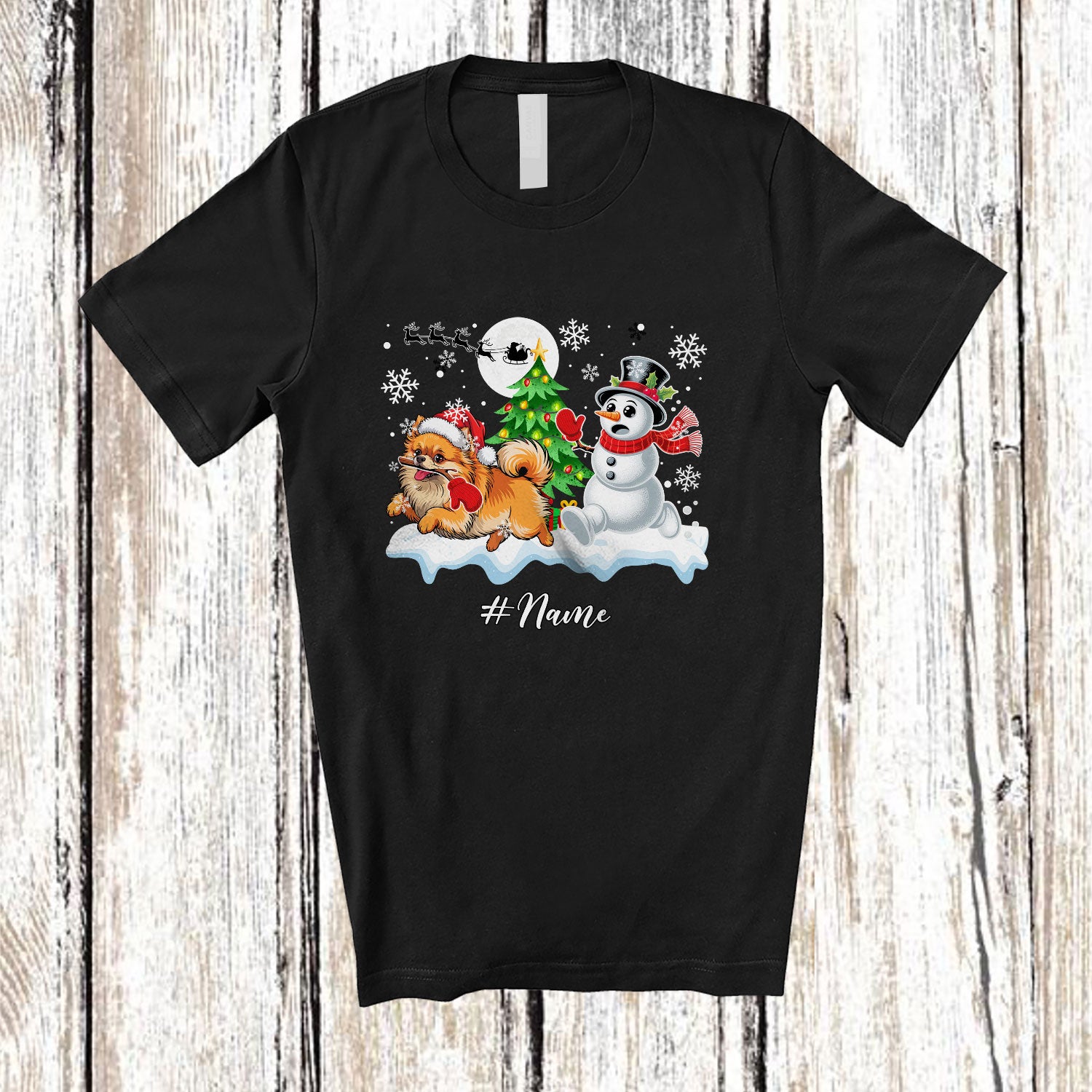 Personalized Custom Name Santa Pomeranian Snowman; Lovely Christmas Tree Friends Family T-Shirt