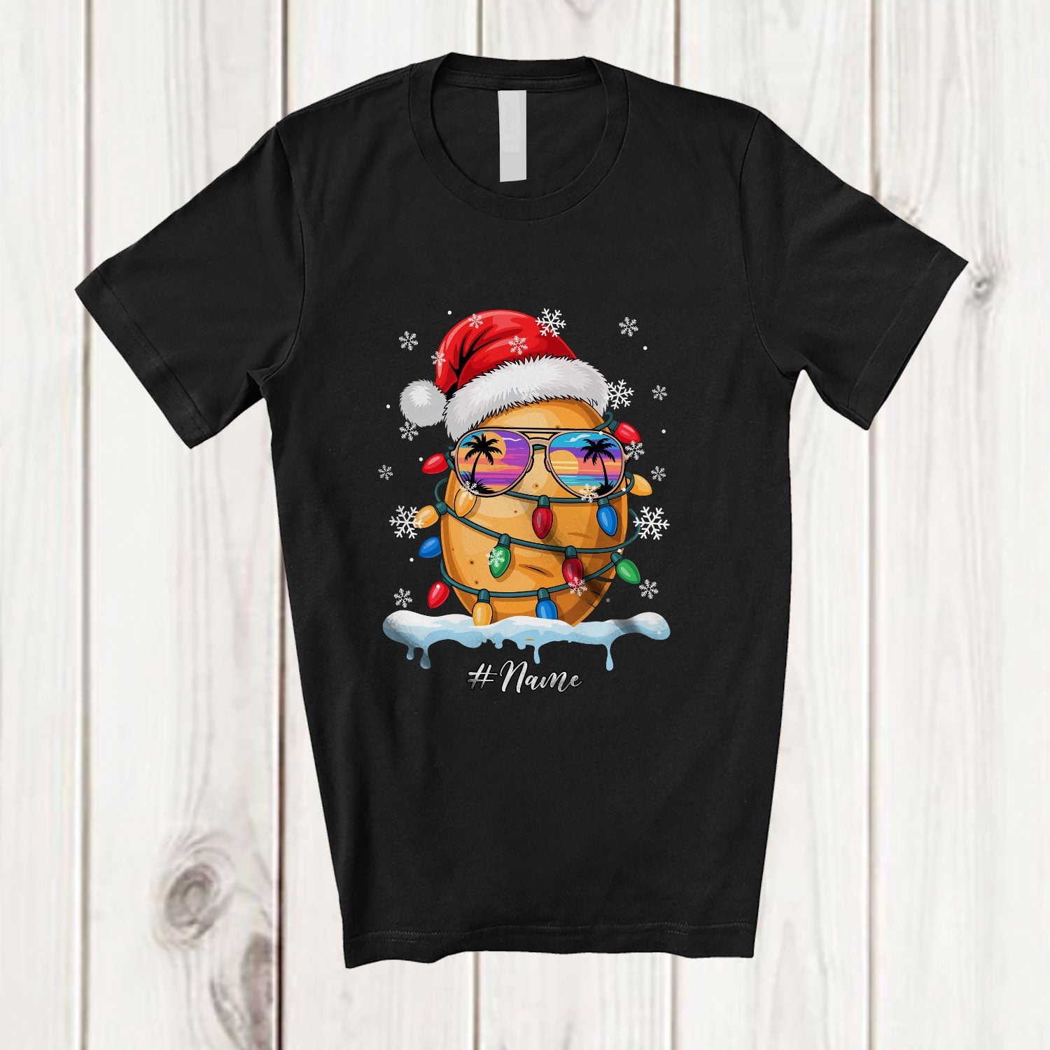 Personalized Custom Name Santa Potato Sunglasses; Joyful Christmas Lights Family Group T-Shirt