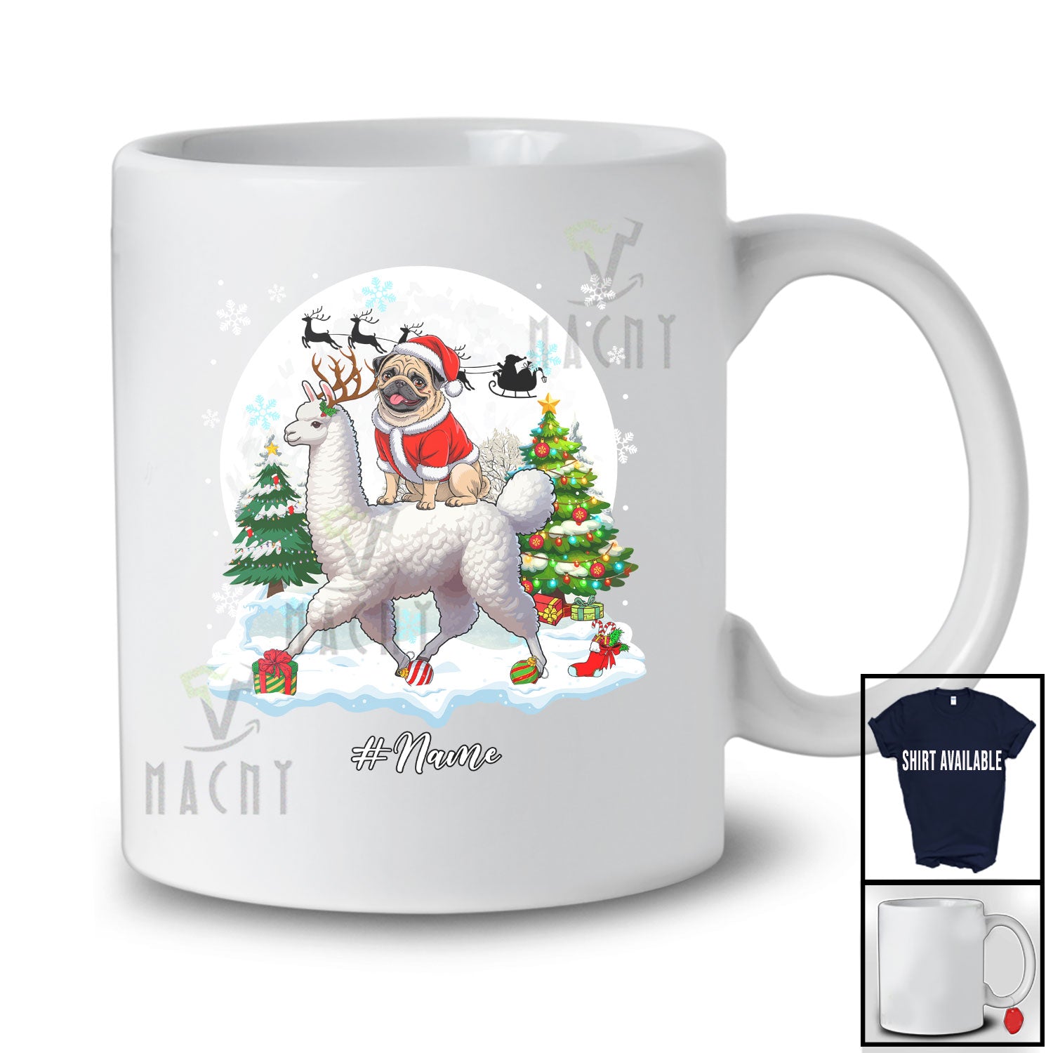 This Personalized Custom Name Santa Pug Riding Llama; Merry Christmas Moon Snow Animal T-Shirt is great idea gift for your family, friends in this birthday, christmas, mother's day, father's day, patrick's day or any holiday.