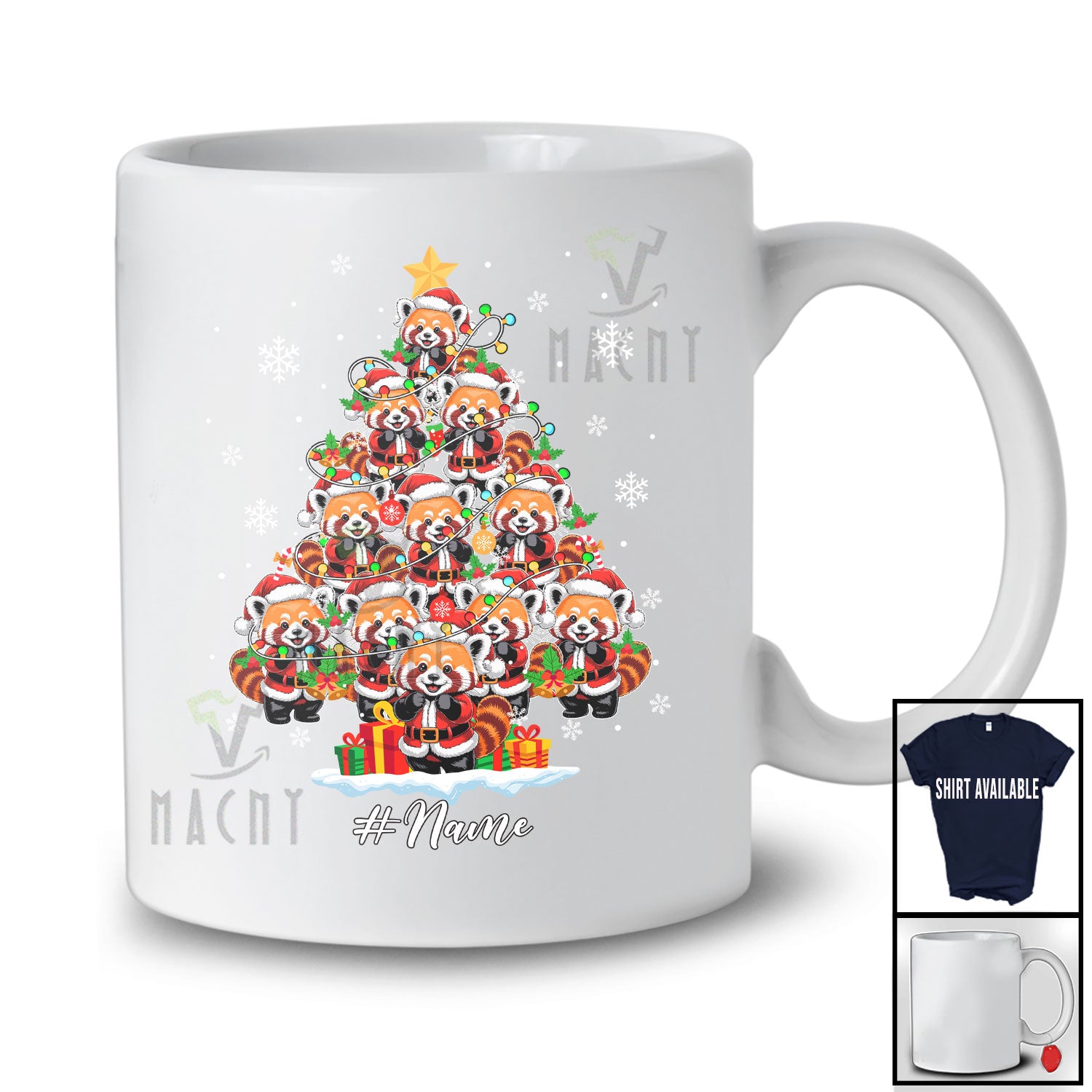 • Every product is unique, just like you. If you're looking for a product that fits the mold of your life, the Personalized Custom Name Santa Red Pandas Christmas Tree; Amazing X-mas Lights Animal T-Shirt is for you.