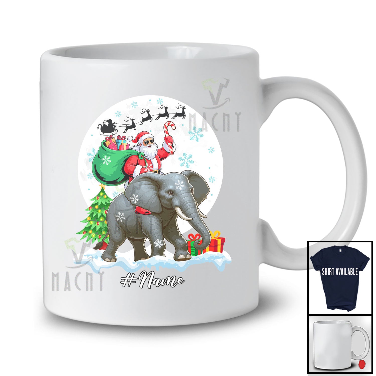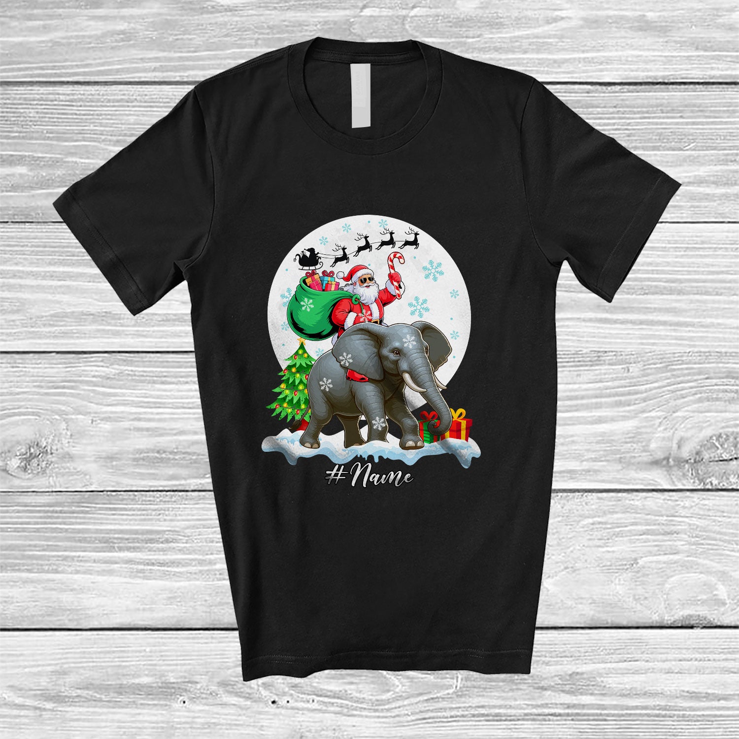 new MacnyStore - Personalized Custom Name Santa Riding Elephant; Lovely Christmas Moon Wild Animal; Family T-Shirt – Macnystore